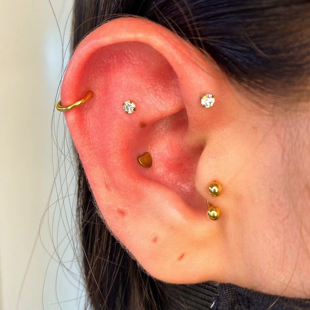 Três projetos auriculares que ficaram lindos realizados por piercers brasileiras.