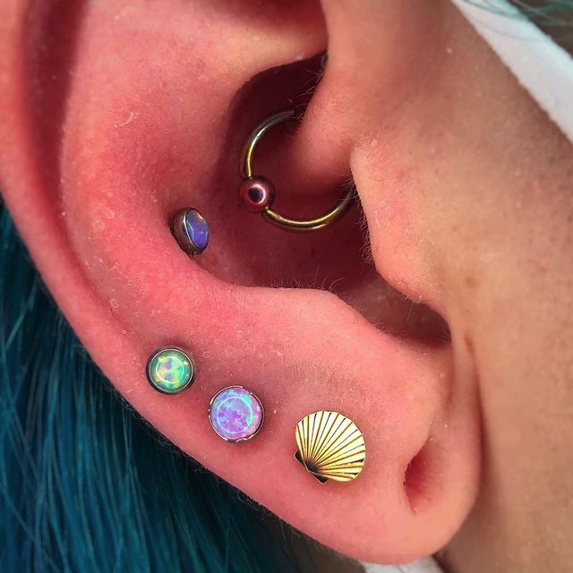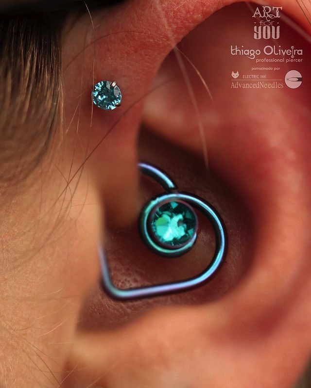 E que tal essas perfurações do Daith e Contra Conch feitas pela piercer brasileira Deyse Jay? Esses piercings coloridos ficaram uma graça né?