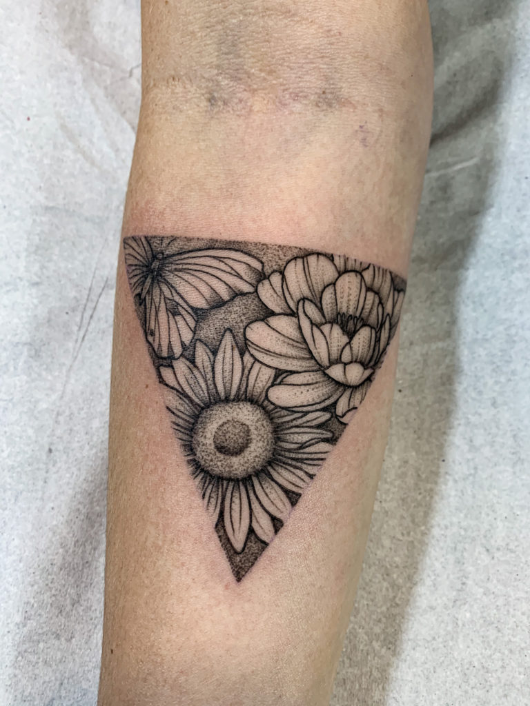 A Gabi nos contou que é apaixonada por desenhar e pintar desde criança. Formada em design digital, trabalhou durante dez anos como web designer, mas resolveu largar tudo e ir atrás de sua paixão pela arte e se dedicar a tatuagem. Desenvolve trabalhos em traço fino, como florais e desenhos voltados a natureza. Suas inspirações são as artistas: Jessica Navas, Ana Abrahão, Bru Simoes e Gizele Goes.