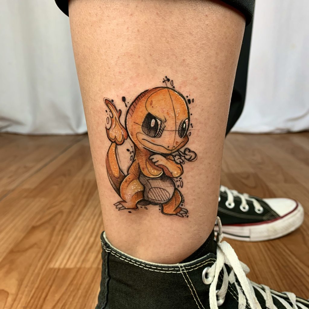 Dani desde pequena gostava de desenhar a todo momento, e também gostava de rabiscar seu corpo: “Nem me lembro quantas vezes minha mãe já me falou que fazia mal mas mesmo assim continuava, meu corpo era minha agenda de lembretes, meu caderno, minha tela de arte. Meus pais são economistas e tinham uma visão mais quadrada pra minha vida, mas acabei nascendo artista e Lgbt e fui fazer faculdade de Artes Visuais na USP. Lá já praticava arte corporal como expressão mas sempre com maquiagens e tintas, até que percebi colegas que começaram a adentrar o mundo da tatuagem. Foi como um momento de epifania, um caminho que se mostrou pra mim. Eu tive que batalhar muito pra começar na carreira, mas o caminho se mostrou como uma possibilidade. Meu estilo se desenvolveu muito do que já era minha ilustração, mas tive influência da técnica de vários artistas como a @lawmelo, @ninaxisto (que foi aprendiz comigo), @petalacavalcanti, entre outres artistas incríveis.”