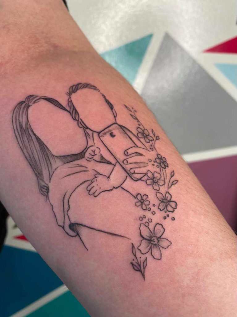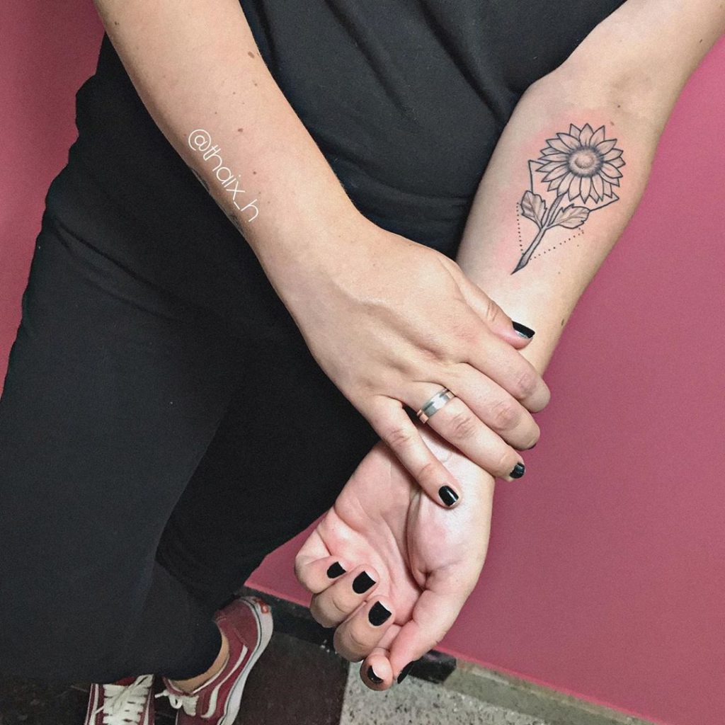 A história da Mirella com a arte é também uma história de amor: “Fui fazer uma tatuagem, me apaixonei pelo tatuador – risos – casei, e depois de um tempo ele me ensinou a tatuar. Meu estilo de trabalho é tatuagem feminina, delicada com o traço fino. Florais e escritas são as minhas especialidades. Minha inspiração é o meu marido @maestro.fernandotattoo