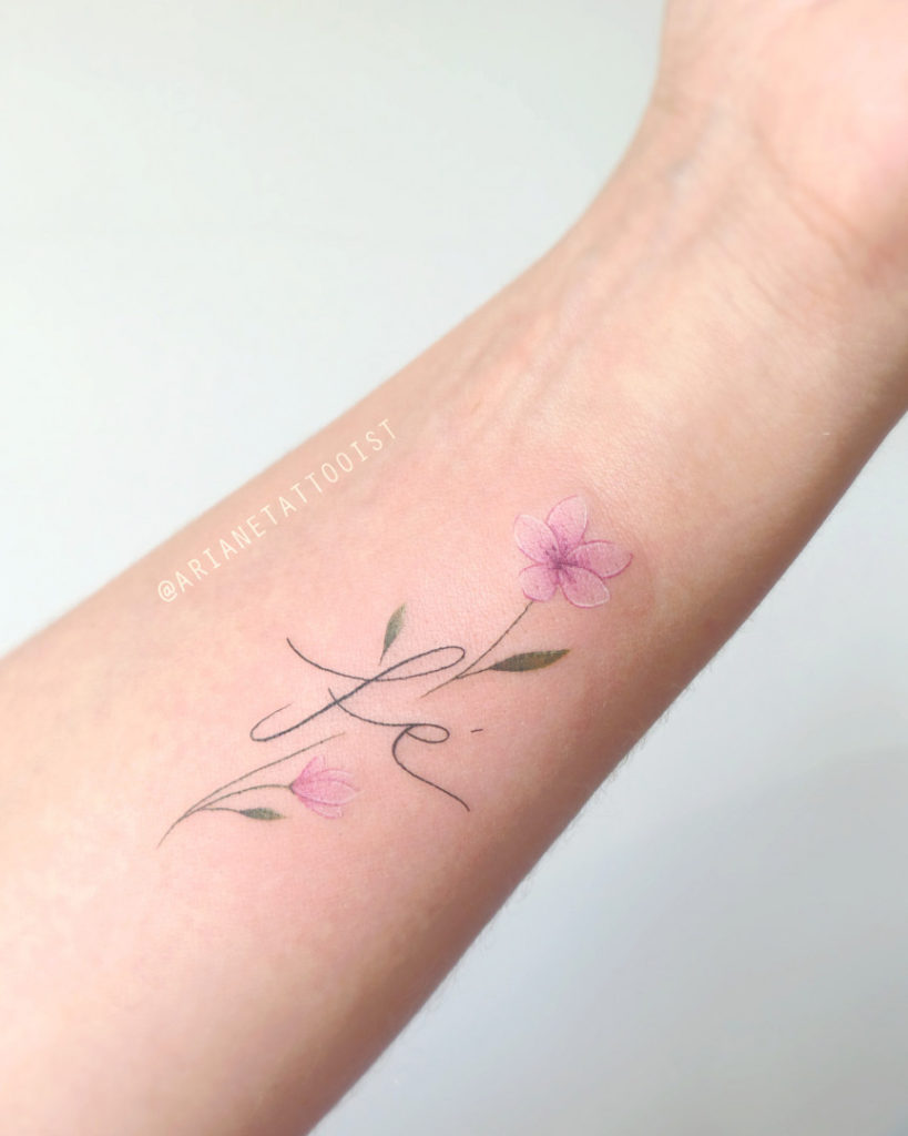 A arte e trajetória da Ariane: “Eu tinha facilidade para desenho desde pequena, mas nunca foquei nisso até então, e também sempre fui admiradora do mundo da tatuagem. Foi quando iniciei um curso pré vestibular que senti vontade de voltar a desenhar, e decidi que tentaria trabalhar com tatuagem, pois nunca tive certeza de qual curso eu tentaria entrar, e essa foi a melhor decisão que tive. Já fazem 7 anos que tatuo! Hoje em dia meu trabalho é mais focado em traços finos e desenhos delicados com temáticas mais femininos.”