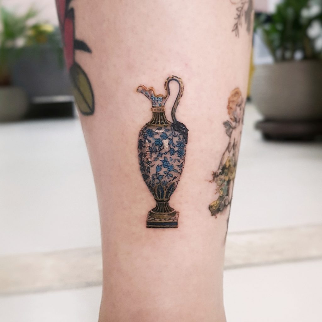 Mah, chega mais e conta sua história: “Trabalhei durante 10 anos como designer e sempre amei tatuagens, decidi comprar uma maquininha para tentar me tatuar, o que era pra ser só um teste acabou se tornando a minha paixão! Tatuo há 2 anos e minhas inspirações hoje são principalmente as tatuadoras coreanas!”