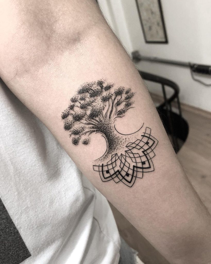 Ana, conta sua história: “Eu era publicitária e estava infeliz com a vida e com a profissão. Há 4 anos comecei a desenhar como terapia e descobri na arte um propósito. Depois de 1 ano produzindo quadros e mandalas, influenciada por amigos, comecei a tatuar e vi que era possível trabalhar com arte e tattoo. Minha missão é ser eu mesma, e poder fazer o que eu amo através da livre expressão dos meus talentos é algo muito especial pra mim. Meu estilo de trabalho caminha entre fineline e boldline, predominando a cor preta, e às vezes, eu uso uns toques de colorido, porque como boa ariana eu odeio rotinas. Tenho vários artistas como referência mas em especial a Jacque Lopez e a Law Melo me emocionam com seus desenhos incríveis.”