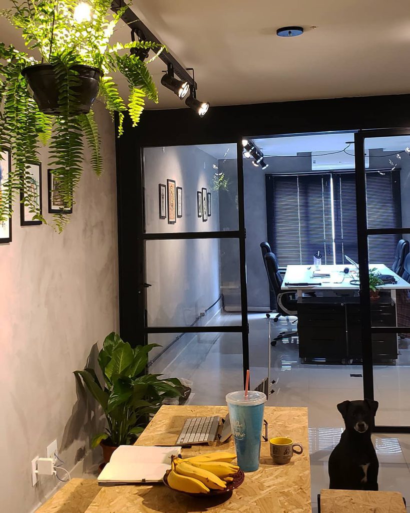 Além disso nosso escritório também tem um toque com plantas dando um ar de refresco (risos):