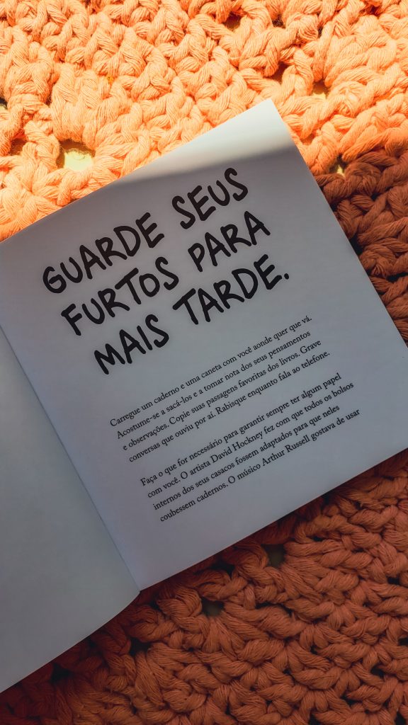 Como o livro é curtinho, e adoraria que você realmente lesse, não irei dar spoiler! Então passarei em pequenas partes e uma série de postagens para o instagram para falarmos sobre os ensinamentos do “Roube como um artista”.