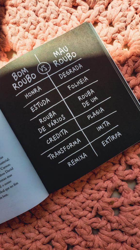 Ui! Pesado, né? Ao longo do livro “Roube como um artista”, você irá se convencendo o que o autor realmente quer dizer com roubo, e que ele não está falando de plágio!