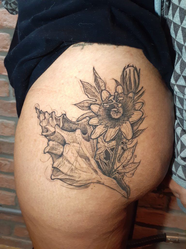 “Me chamo Fernanda, atuo como tatuadora desde 2016 e minha especialidade é o tradicional old school. Minhas temáticas favoritas são animais, flores e mocinhas. Amo usar desse estilo para reformas e coberturas também. Possuo um projeto gratuito para tatuar e ressignificar cicatrizes de automutilação. E além da tatuagem, me dedico a pinturas e desenhos, a arte de maneira ampla.”