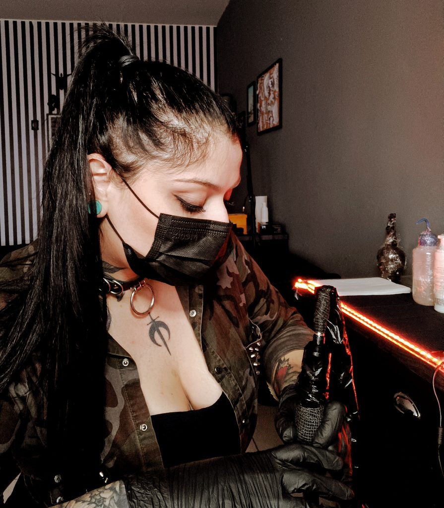 Mesmo tendo seguido um caminho inicialmente diferente ao se formar em Análise e Desenvolvimento de Sistemas, a paixão de Flávia pelo desenho e pela arte nunca esmoreceu. Ela conta: “Quando fiz minha primeira tatuagem na minha irmã em 2016, tive a certeza de que era isso que queria fazer, estudar, evoluir pelo resto da minha vida.