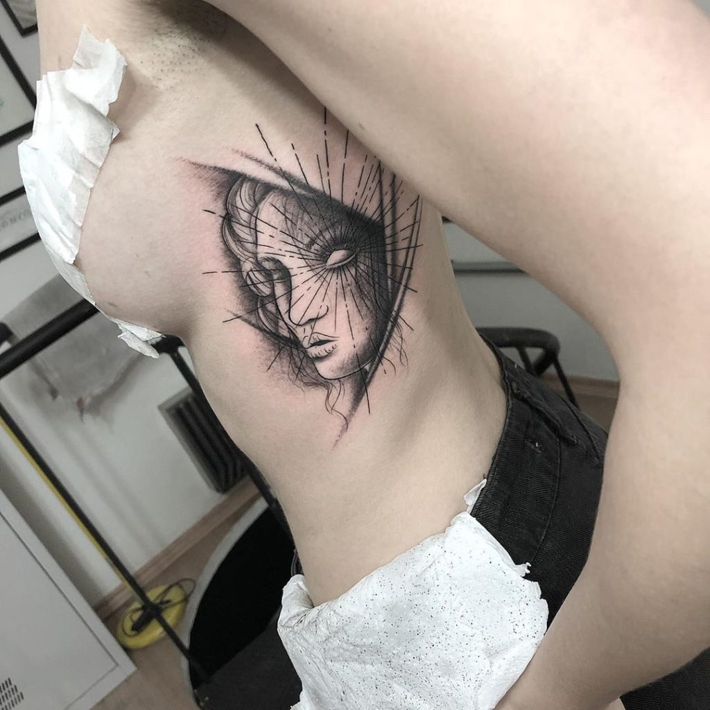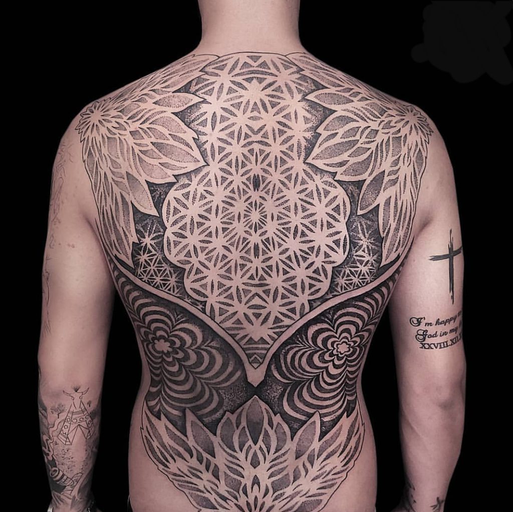 Felipe Ferrari tem 30 anos e é tatuador há 12 anos. O artista é formado em Design Gráfico pelo Instituto Europeo di Design e sempre trabalhou com ilustrações sintéticas e surreais com algumas referências da natureza. “Descobri que o corpo humano e a geometria tem muito em comum e as composições são únicas e muito próprias para cada pessoa e anatomia. Sendo assim, assumi profissionalmente a tatuagem e minha identidade em 2015. Focando nos estudos e trabalhos desse estilo de arte.”