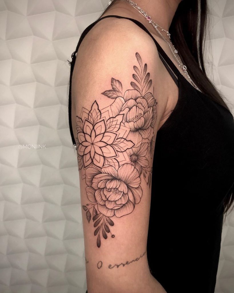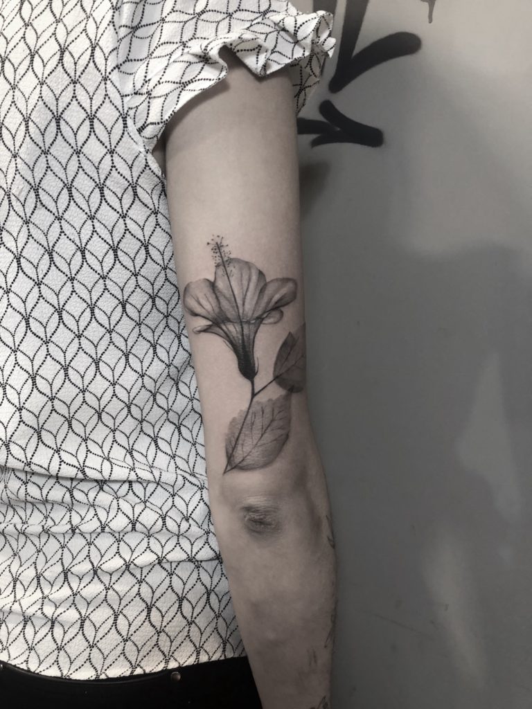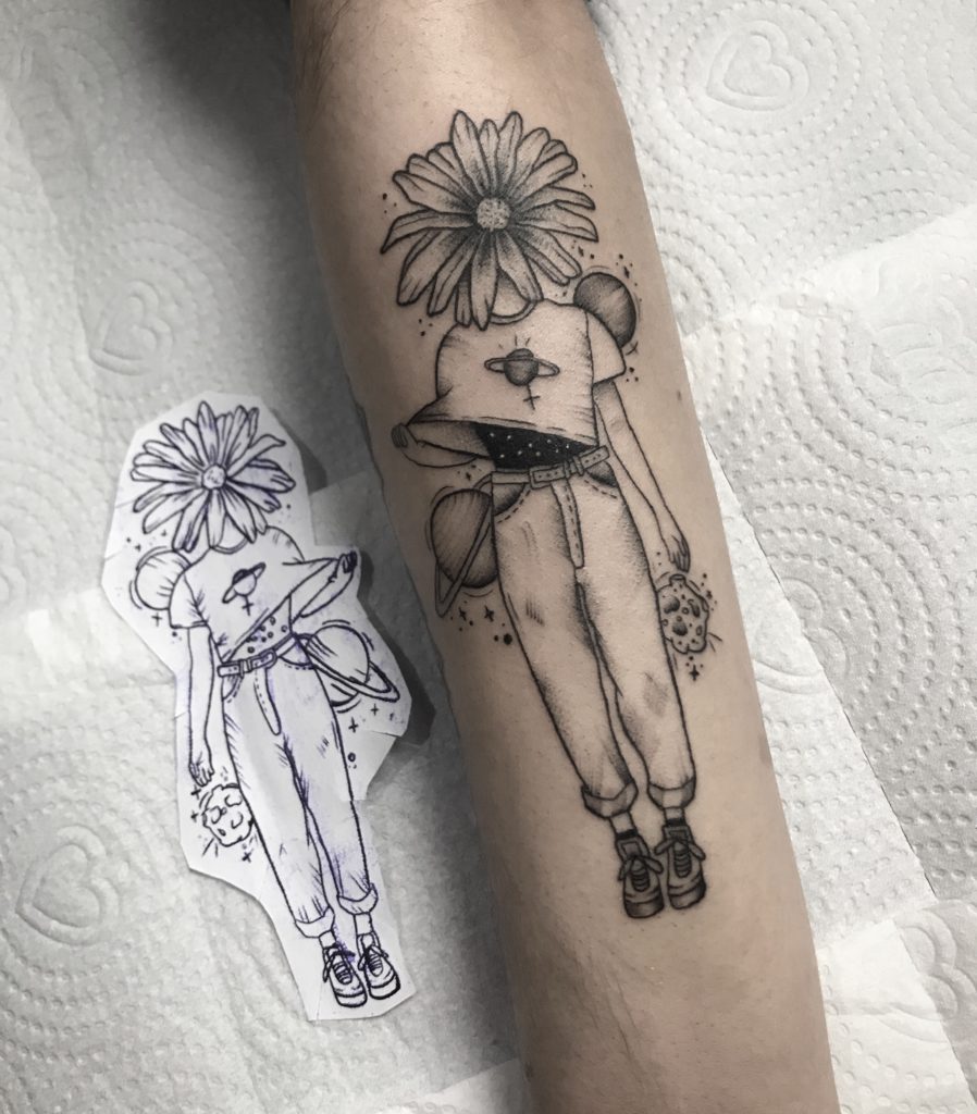 Moniink tem 25 anos e há 2 anos é tatuadora. A artista conta que trabalhava com micropigmentação há quase 3 anos e estava saturada pela profissão: “Sempre a mesma coisa e comecei a procurar algo que me tirasse da minha zona de conforto, foi onde comecei a tatuar, sempre fazendo tattoos na família. Aí, conheci vários profissional da área na Artfusion e comecei a me envolver mais na tattoo. Fazia sempre coisas mais delicadas, conheci a Rhay e o Rapha Lopes por lá, pessoas que me incentivaram muito a entrar nesse estilo de tattoo. Hoje, já gosto de fazer trabalhos um pouco maiores e amo tatuar florais!”