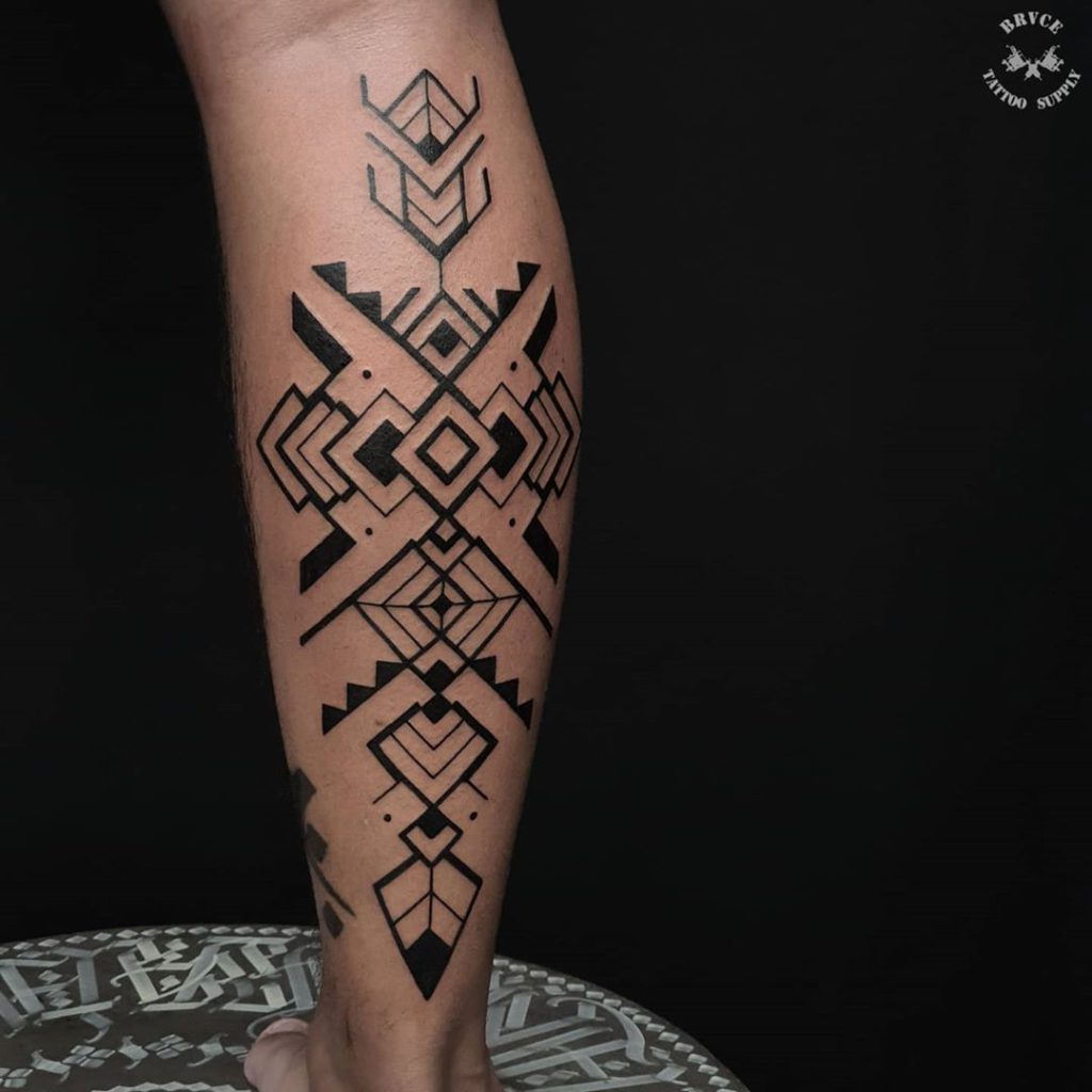 Leandro tem 29 anos e já se imaginava como artista desde pequeno. “Em 2004, iniciei estudos sobre a cultura da polinésia, e me apaixonei por todas as grafias, composição, aplicação e história das tribos dessa região. No meio de 2017, decidi estudar mais a fundo os tribais brasileiros já que amo meu país e temos uma cultura muito rica”. Tatuador há 9 anos, seu estilo favorito é o Tribal e atualmente desenvolve trabalhos com influências na cultura Marajoara, Samoana, Marquesan, Indígena Brasileira, além de outras artes com referências étnicas do mundo todo.