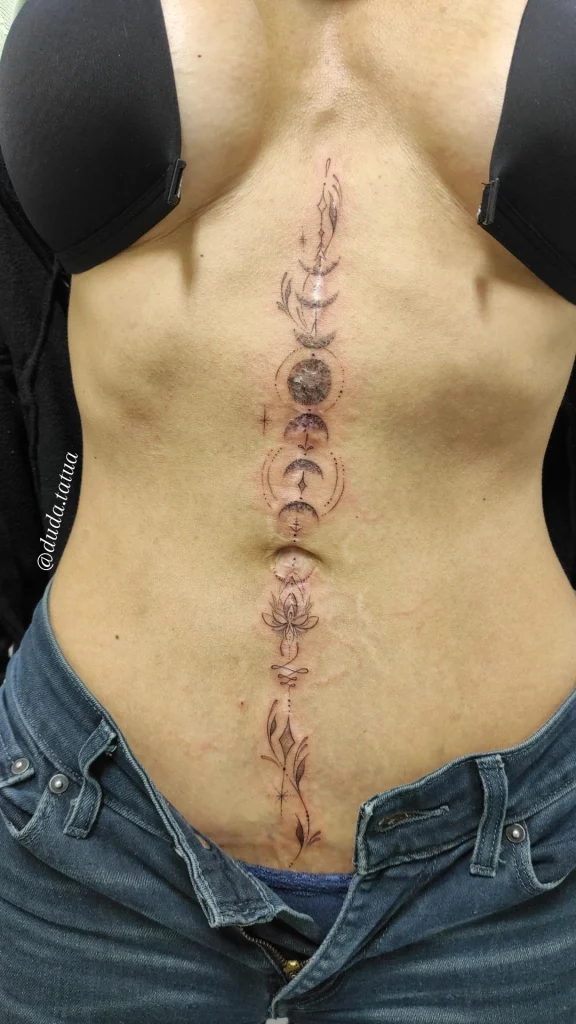 Lembrando sempre que o design exato pode ser adaptado de acordo com a forma e o tamanho da cicatriz, e as preferências individuais. É essencial trabalhar com um tatuador experiente que possa criar um design personalizado que não só cubra a cicatriz, mas também traga um significado profundo de superação para você.
