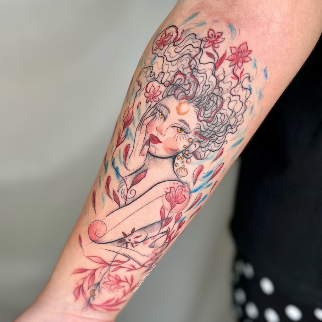 Quando pensamos em tatuagem, muitas vezes vem à mente a ideia de arte permanente, uma expressão visual que fica marcada na pele. Para Scarlath Louyse, tatuadora e artista multifacetada, a tatuagem é muito mais que isso – é uma forma profunda de expressão artística e pessoal, que ressoa com cada cliente de uma maneira única e intimista.