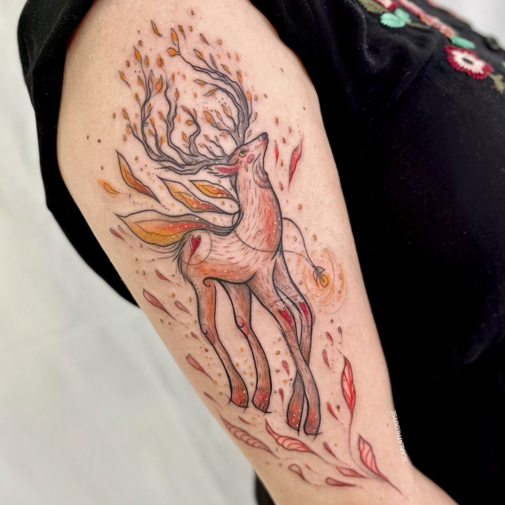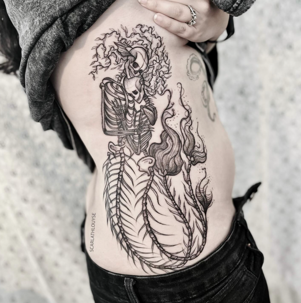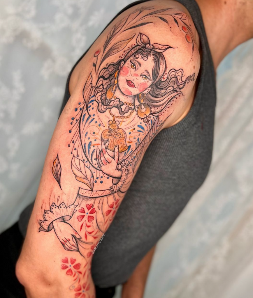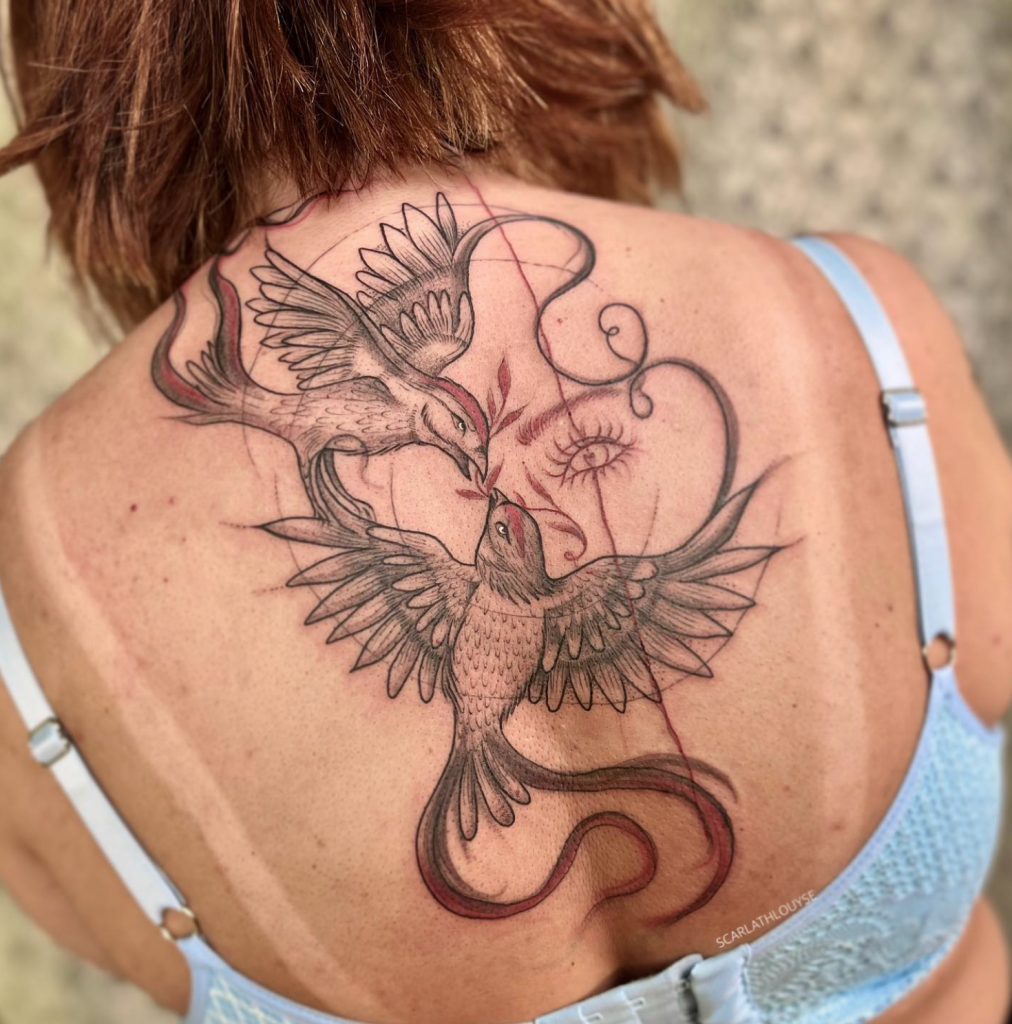 Scarlath já tatuou em diversos países ao redor do mundo, uma experiência que moldou sua arte e sua visão de mundo. “Essas experiências me amadureceram bastante e consigo ser uma artista mais versátil,” diz. Apesar de estar sempre em movimento, ela retorna ao Brasil uma vez por ano para tatuar suas clientes e manter a conexão com suas raízes. (Em seu instagram sempre anuncia as datas e as cidades com antecedência, importante acompanhar, pois é uma turnê nacional incrível passando por diversas cidades, e tenho certeza que passará perto de você.)