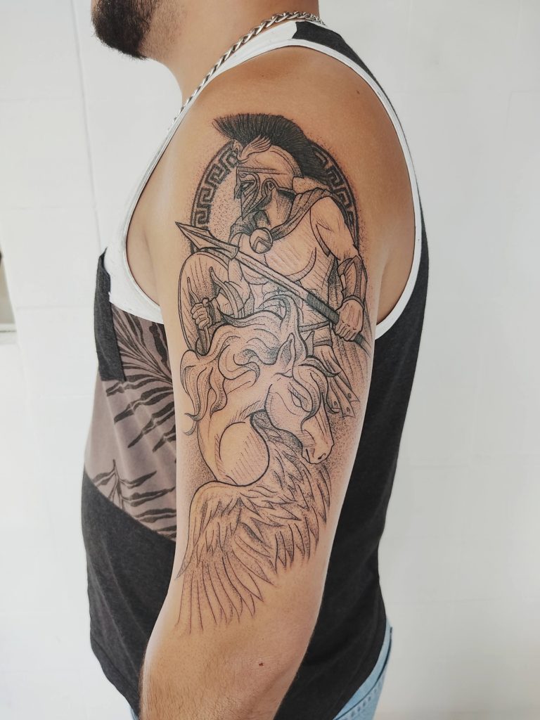 Sendo bem honesto, aquele ano difícil nunca saiu da minha cabeça e foi fundamental no meu envolvimento mais direto com a tatuagem, pois eu disse pra mim mesmo que não deseja passar por aquilo novamente e percebi que não existe mercado “seguro” e que meu maior desejo sempre foi trabalhar com algo que realmente amava e que dependesse de mim de forma ainda mais direta. Desenhar sempre foi e é minha paixão, foi ai que comecei a cair de cabeça no mundo da tatuagem.