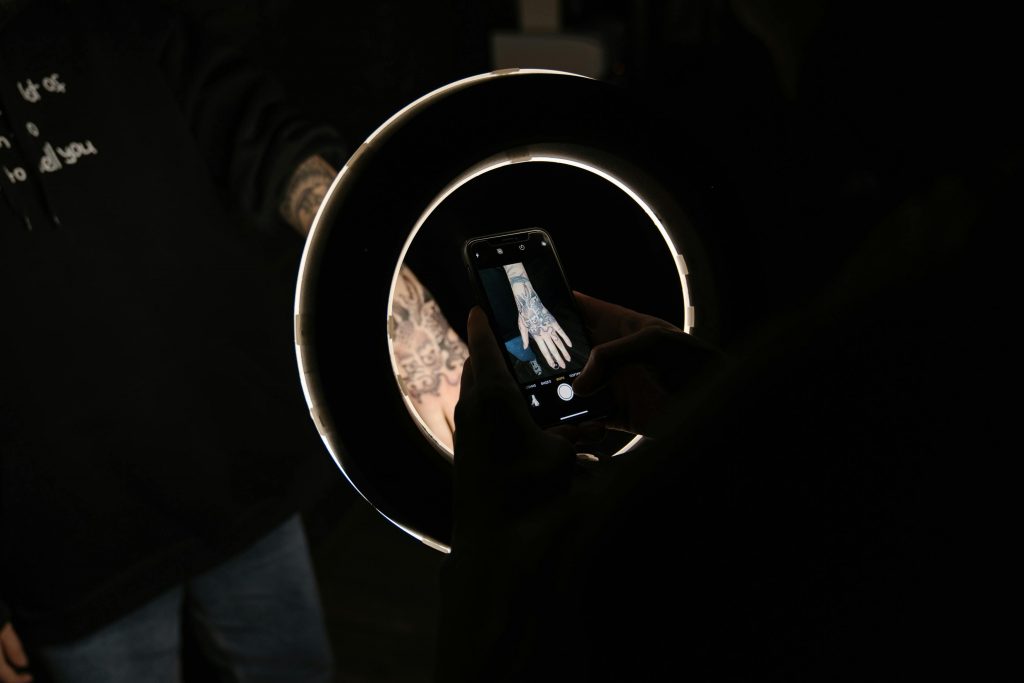 A iluminação é um dos fatores mais importantes. Fotografar com luz natural, preferencialmente durante o dia, dá realce as cores e aos detalhes da tatuagem. Se não for possível usar a luz do dia, utilize lâmpadas de LED ou softboxes para criar uma iluminação uniforme e sem sombras indesejadas.