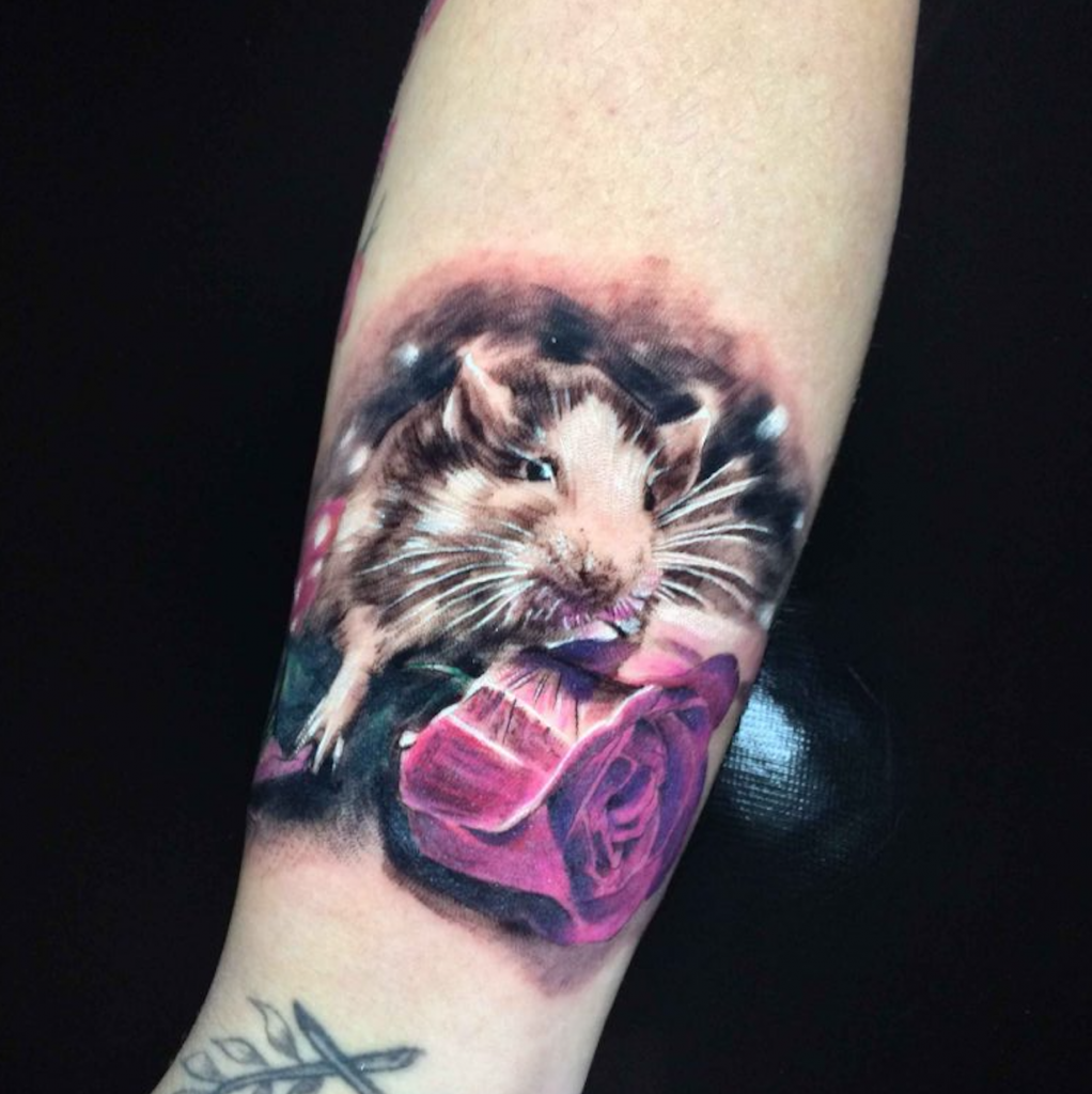 “Desde novo sempre desenhei, por vontade própria, nunca fiz cursos, porém sempre estudava técnicas. Aos meus 20 anos decidi não seguir o ramo da informática e que, por influência da minha mãe, tentaria a tatuagem. Sendo assim falei com meu tatuador na época, Anderson tattoo art, hoje em dia tatuamos juntos e além de profissionalmente, somos amigos! Hoje tenho como referência: Alessandro Chaiblick, David Vega, Hanna Ferreira, entre outros!”