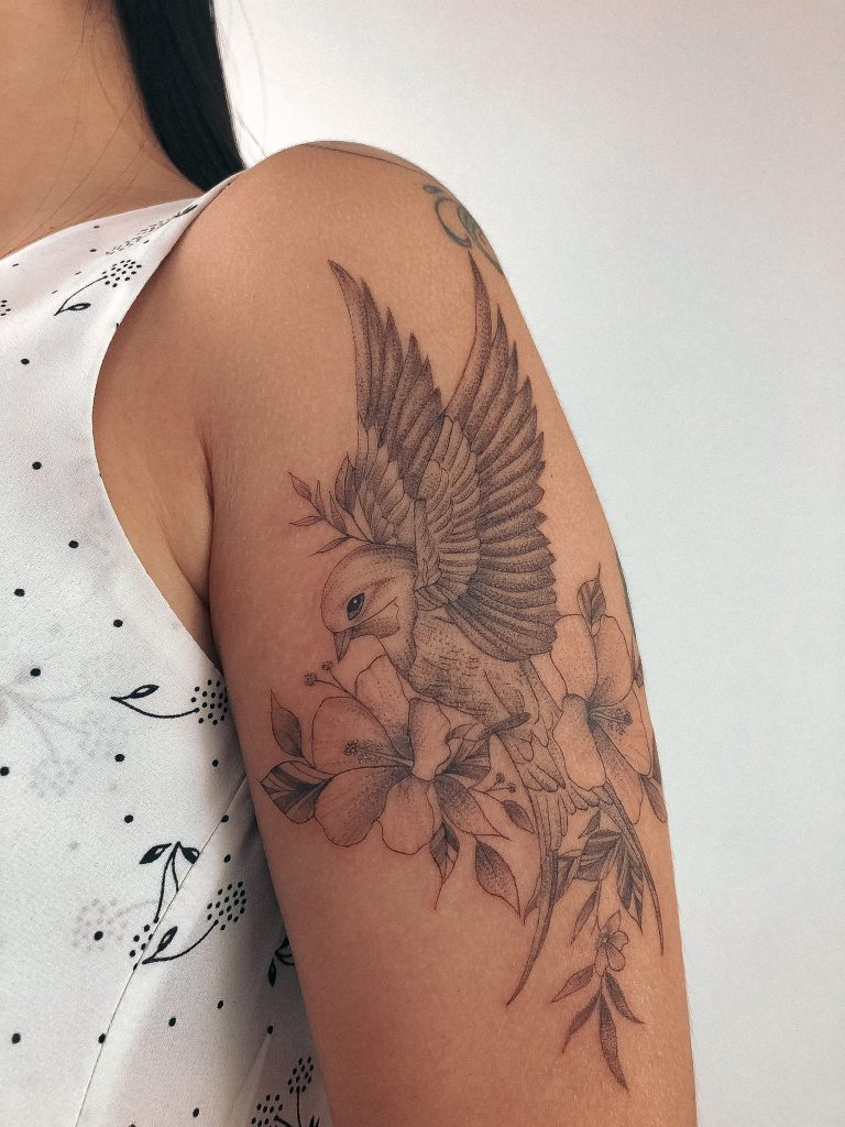 “Oi, sou Juliane Bittencourt, sou formada em Design de Interiores, amo toda forma de arte, trabalho com murais e pinturas em tela, mas a tatuagem sempre me chamou a atenção, e nesse mês de Dezembro, completo meu primeiro ano como tatuadora. Os estilos que mais me identifico são os florais, ornamental e fineline. Minhas maiores inspirações são @thaisvalentetattoo, @inlove.tattooer e @zihwa_tattooer.”