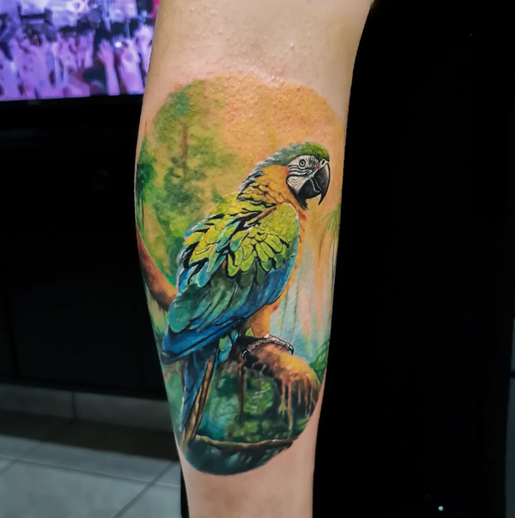 Entre suas tatuagens mais memoráveis estão a arara, que lhe rendeu quatro prêmios em competições nacionais, e um gato realista, que marcou o início de sua maestria na técnica. “Essas peças me mostraram o quanto evoluí e reforçaram minha paixão pelo que faço.”