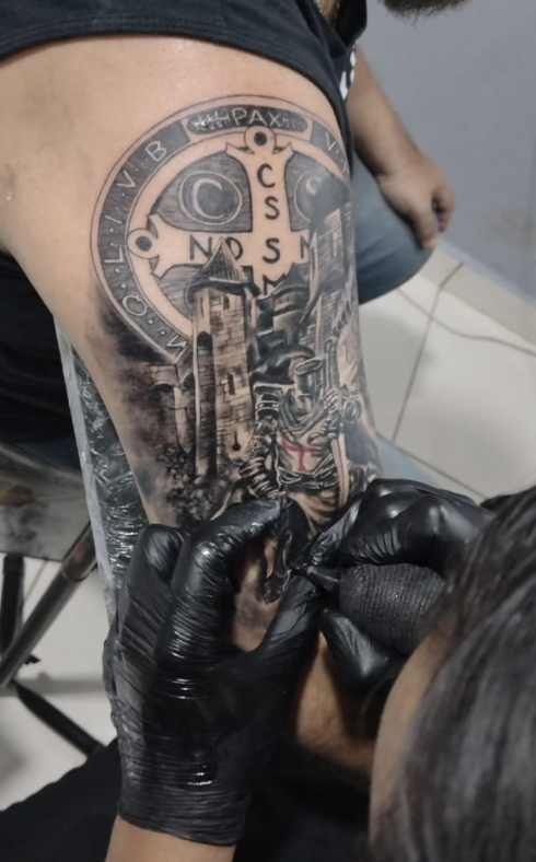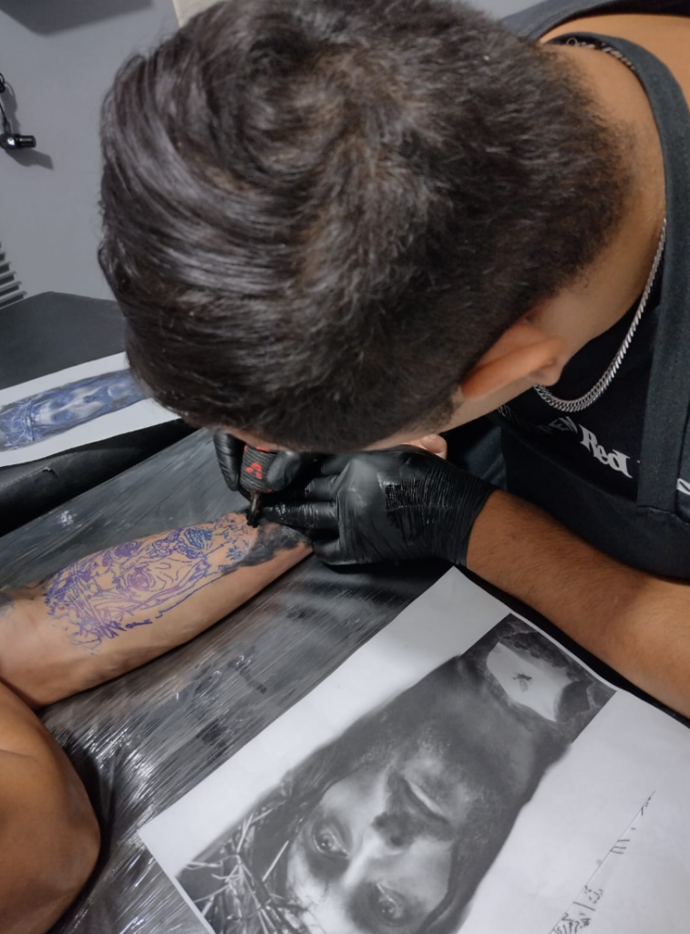 - Técnica Apurada: O artista precisa dominar o uso de agulhas, tintas e máquinas para criar gradientes suaves, linhas precisas e texturas detalhadas.