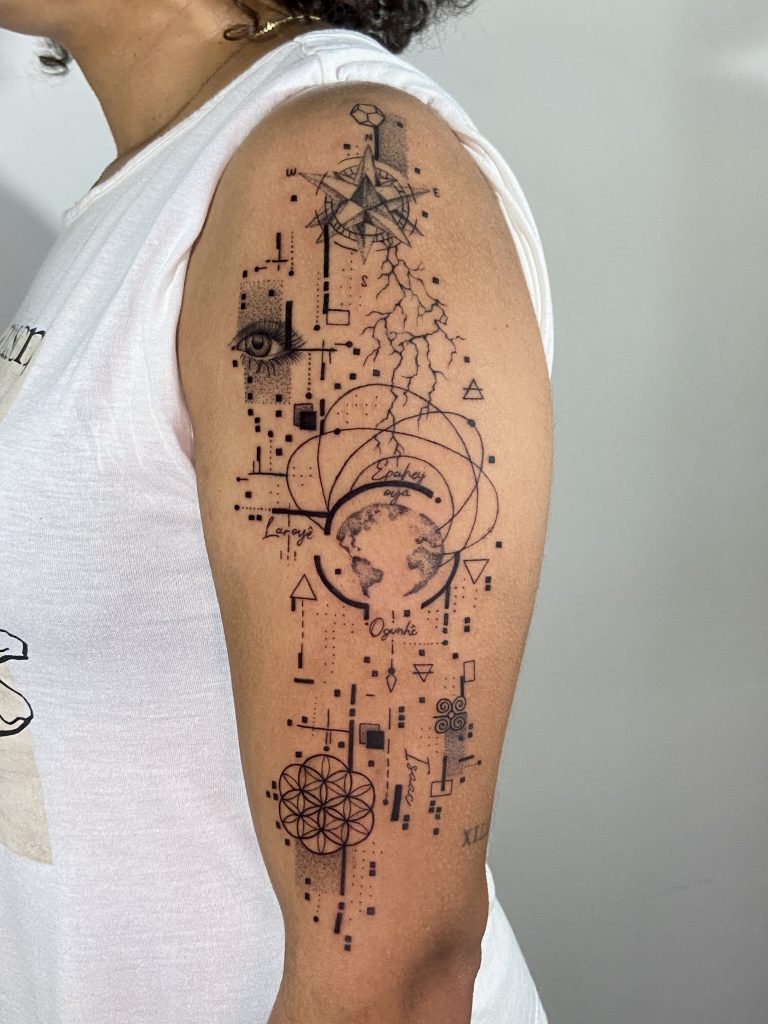 A Profundidade da Tatuagem Conceitual: Aqui, o cliente é intrínseco ao processo criativo, contribuindo com sua narrativa e ideias. Essa colaboração resulta em uma tatuagem que é uma fusão de arte personalizada, única e conceitual. Quando cliente e artistas colaboram nasce algo único e transformador.