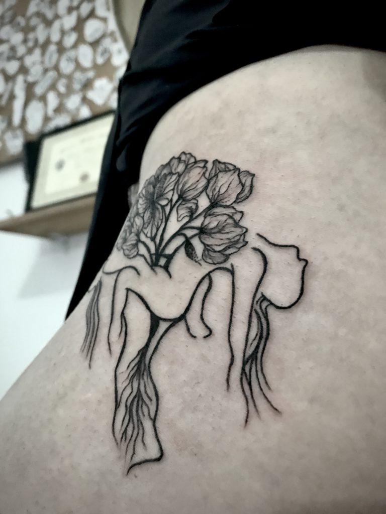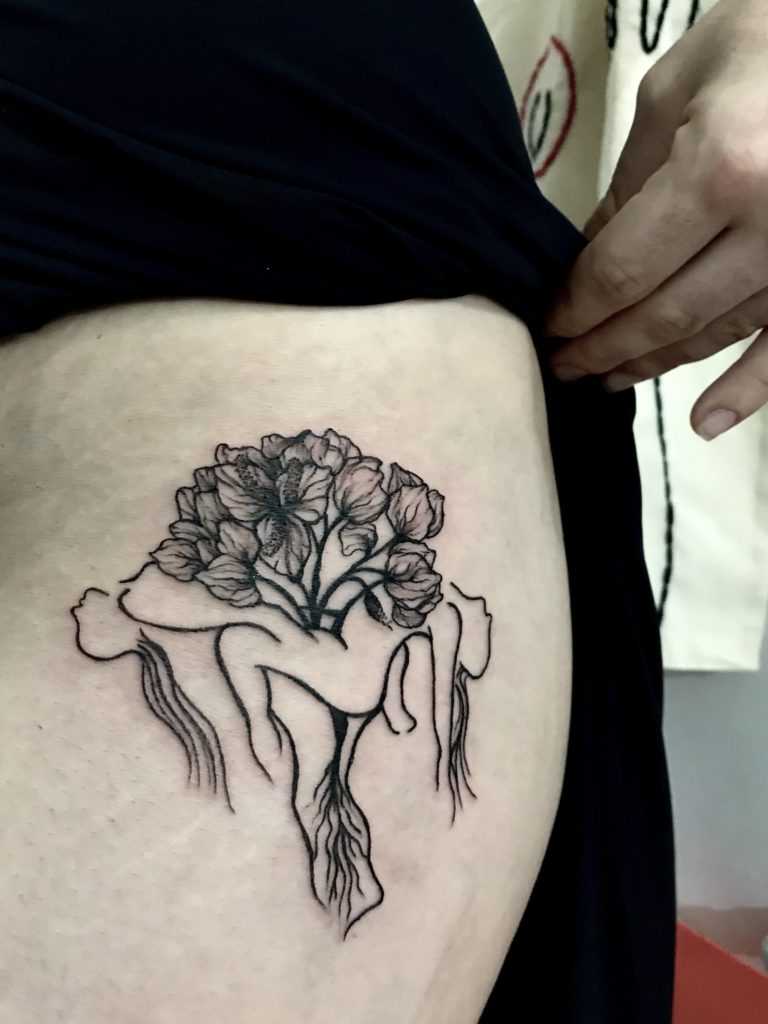 Descobri o corpo, descobri o traço e então, em 2016, despertei o meu imaginário visionário e comecei a tatuar.