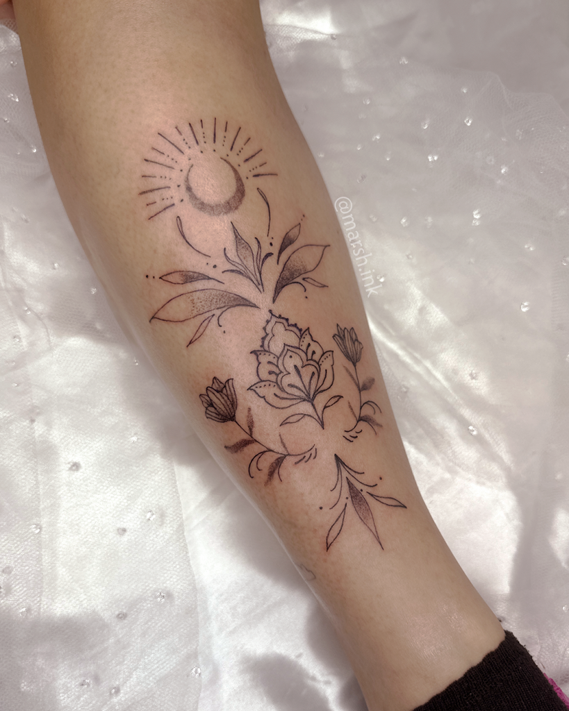 Cínthia Gonçalves é tatuadora em Vitória, no Espírito Santo, e traz em cada traço uma combinação única entre leveza visual e profundidade simbólica. Seu trabalho é focado em fine line, botânica e whip shading, e seu diferencial está justamente na sensibilidade de unir estética delicada com significados que tocam a alma de quem carrega a arte na pele. Cada projeto é feito com cuidado e atenção aos detalhes, respeitando a história do cliente e traduzindo sentimentos em linhas suaves. A Cínthia entrega mais do que uma tatuagem: ela entrega poesia na forma de arte.