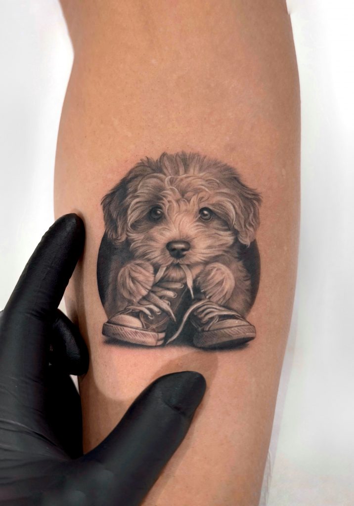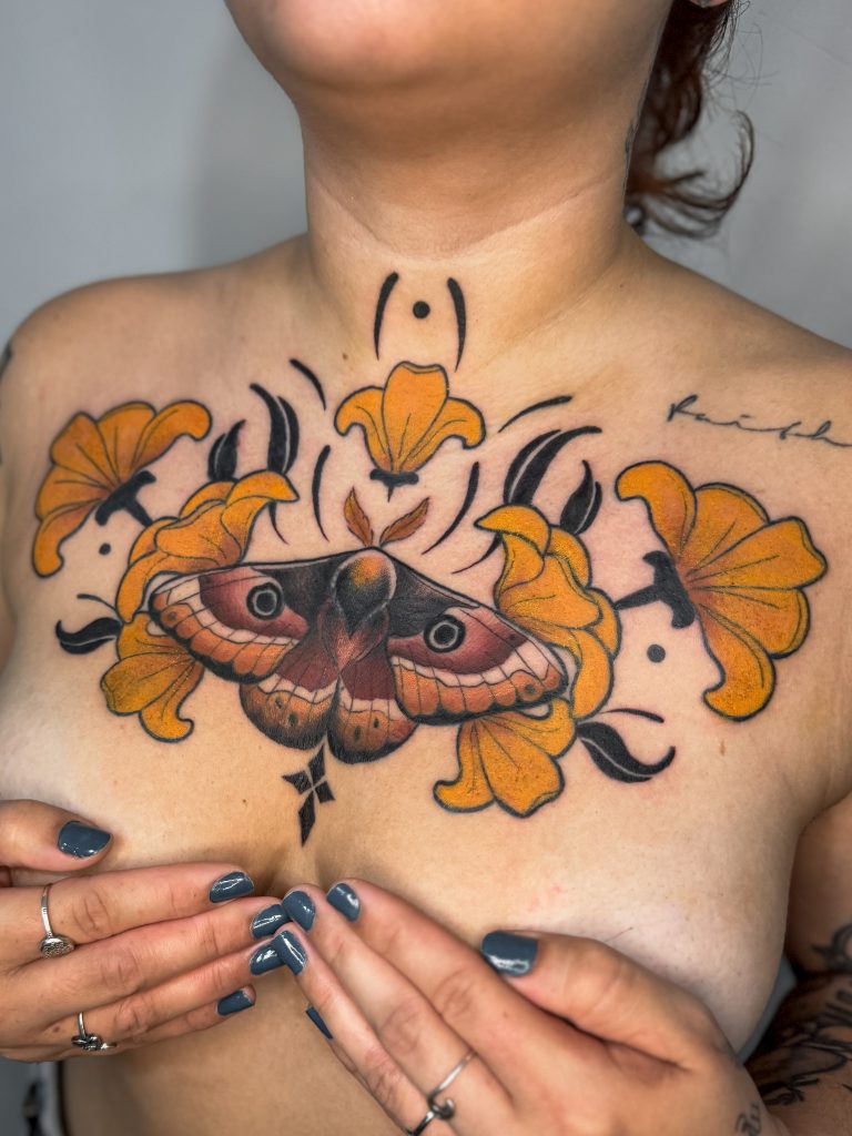Maria Ferrari ama transformar histórias em arte, criando tatuagens únicas e cheias de afeto. Seu estilo é marcado pela delicadeza, com toques de cor, brilho e efeito glitter que tornam suas composições encantadoras. Ela adora desenvolver florais sutis, desenhos de animais fofinhos e diferentes — como um panda comendo hambúrguer e tomando coca zero! Seu trabalho é criativo, leve e com uma pitada de humor e ternura. Conheça esse talento e se encante com sua arte única.