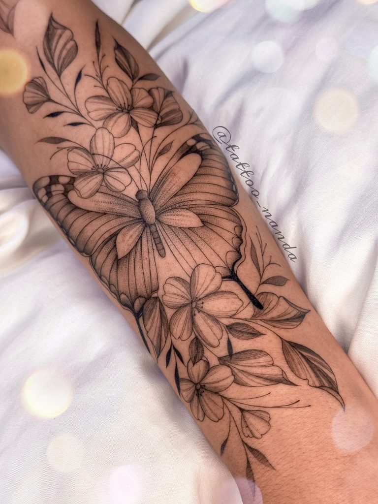 Seu estilo pode ser descrito como autoral e intuitivo, com foco em coberturas delicadas e tatuagens femininas que ressignificam memórias. Nanda acredita na tatuagem como uma forma de expressão profunda, e entrega em cada arte uma conexão genuína com a história de quem escolhe seu traço.