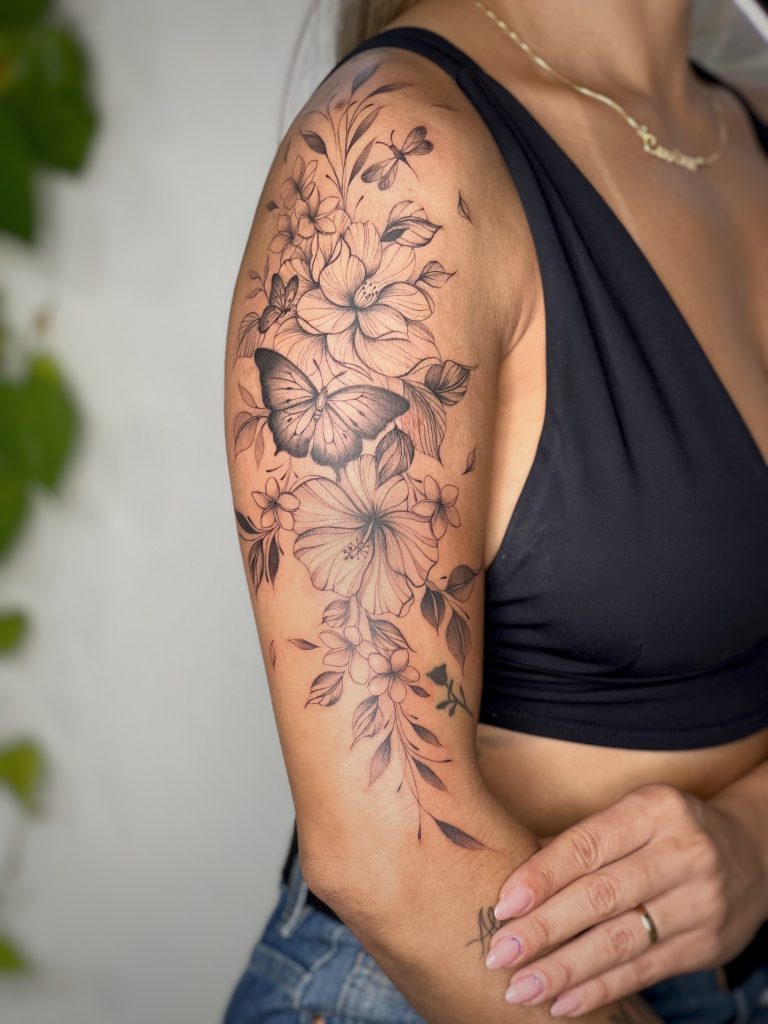 Jéssica Mesquita é uma tatuadora de Americana-SP, especializada em Fineline. A artista tem uma paixão distinta por imortalizar a beleza da fauna e flora em desenhos únicos, criando “jardins” eternos na pele de seus clientes. Cada peça é delicada, repleta de leveza e movimento, pensada meticulosamente para valorizar as curvas naturais do corpo. A essência e o amor de Jéssica pela natureza se refletem vividamente em cada obra de arte. Para conhecer seu portfólio, visite seu Instagram e para orçamentos, ela está disponível no WhatsApp, sempre pronta para transformar a pele em uma tela de expressão artística vibrante.