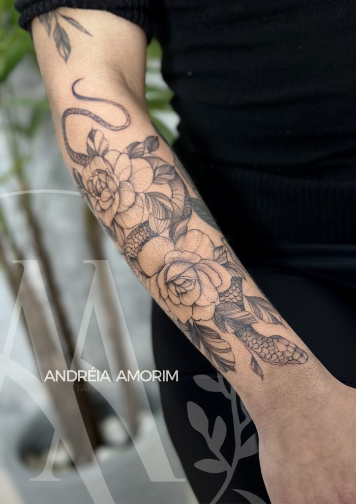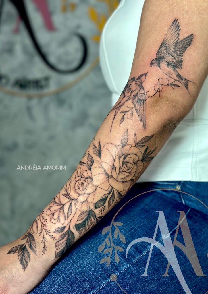 Andréia Amorim é tatuadora tatua em São José dos Pinhais, PR, conhecida por seu estilo distinto de tatuagem delicada e feminina com traços finos, que carinhosamente apelidou de “Fineline”. Com 4 anos de experiência, Andréia transformou sua paixão por desenho e trabalhos manuais em uma carreira florescente na arte da tatuagem. Anteriormente costureira, ela abraçou a mudança e mergulhou de cabeça no mundo ink, evidenciando seu domínio técnico e criatividade. Visite seu Instagram (http://Instagram.com/andreia_ink) para se encantar com seu portfólio ou entre em contato via WhatsApp para informações e orçamentos. Descubra a arte que fala, nas mãos habilidosas de Andréia.