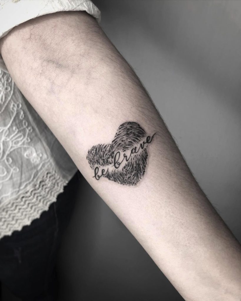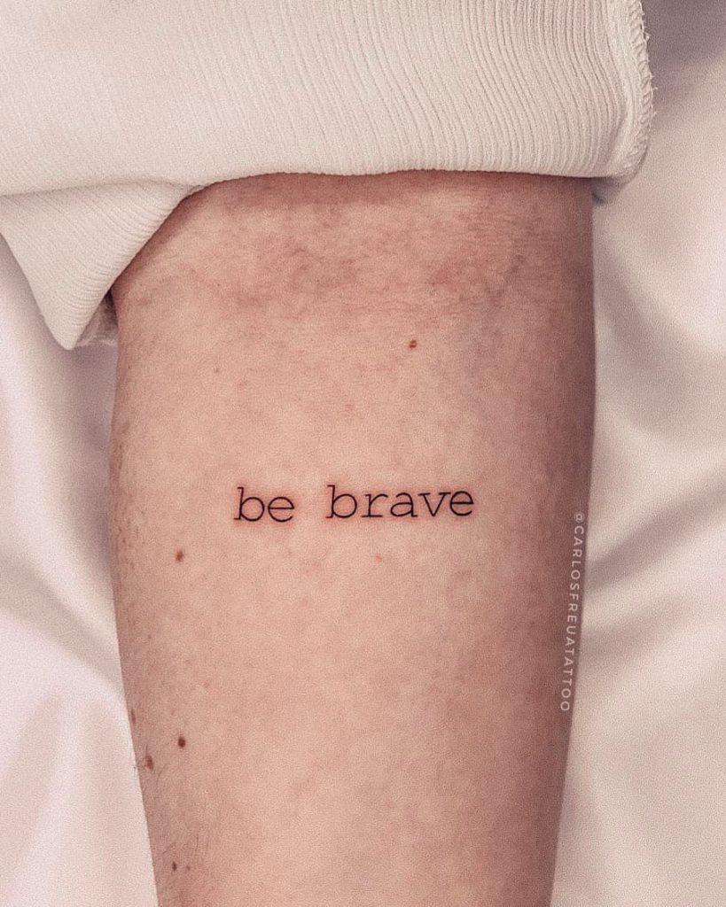 A tatuagem frase “be brave” que significa “seja corajoso” em português é um incentivo para superar o medo e tomar as decisões certas, de arriscar, e se lançar aos novos desafios que a vida apresenta.