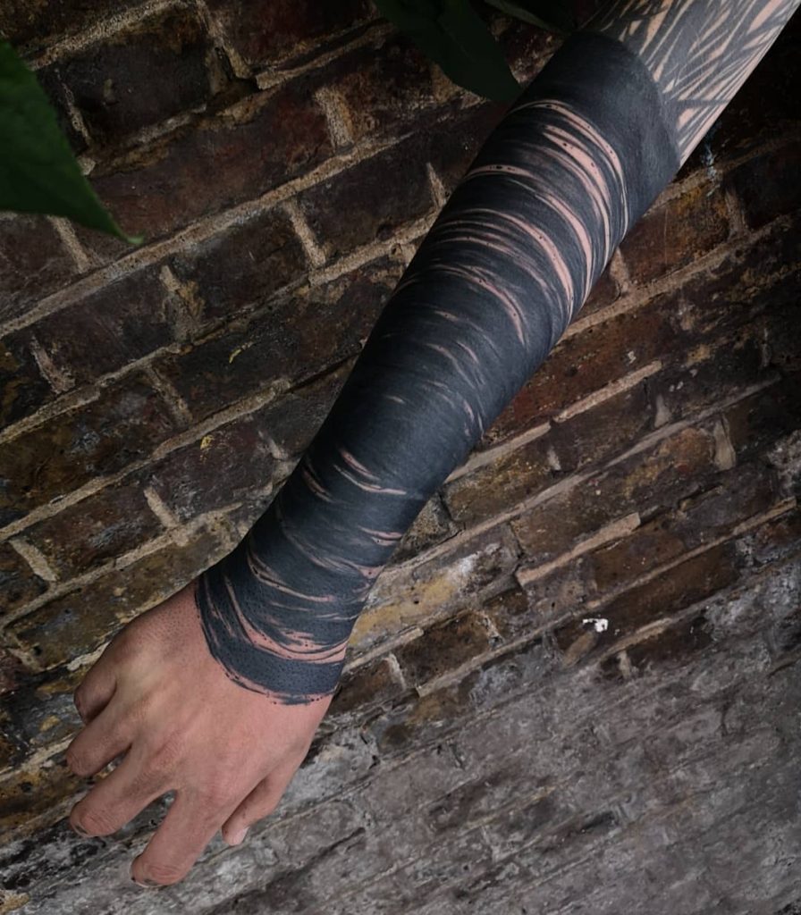 O Blackout consiste em um estilo de tatuagem que cobre a pele com blocos sólidos de tinta preta.