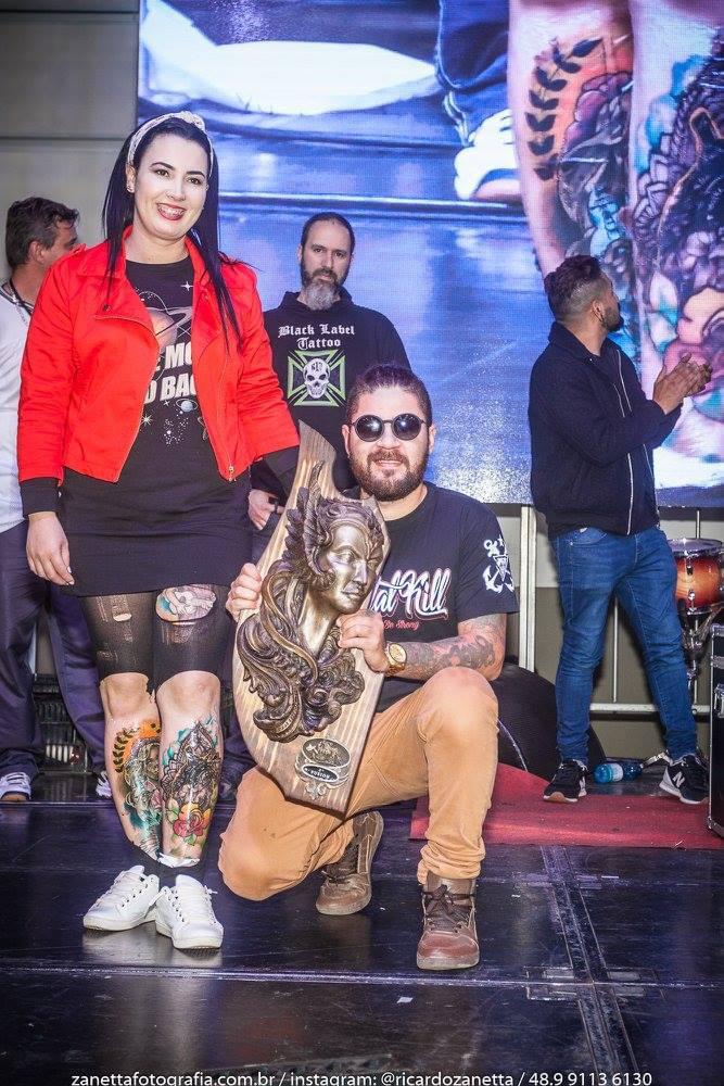 O primeiro foi meu primeiro prêmio em convenção e foi um 2º lugar na categoria Artfusion em 2017! Foi na Expo Tattoo Floripa, ganhar esse prêmio nesse evento concorrido demais, e com grandes artistas foi incrível! Foi uma sensação única e me deu ânimo e motivação, nunca esquecerei essa sensação!