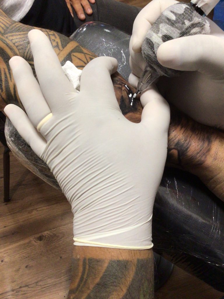 Dentro do processo é extremamente importante conhecer os materiais que se usa, assim como, suas máquinas, cabos, fonte, tintas e até mesmo os bicos/ biqueiras, cartuchos e agulhas; quando utilizamos por exemplo um bico de aço (que pode ser limpo e higienizado com detergente enzimático e água destilada, auxílio de uma cuba ultrassônica e uma autoclave), o contato da agulha com o bico pode acarretar em pequenas fuligens do material, que consequentemente existe a possibilidade de acinzentar a tinta branca, visivelmente passa desapercebido, mas também pode influenciar no resultado da sua tatuagem.