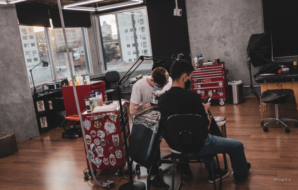 Iuri: “Fiquei de aprendiz nesse estúdio (que iniciei) por cerca de 1 ano, depois eu basicamente pulei de estúdio em estúdio por cerca de mais um ano até parar em um grande estúdio fiquei um ano, até que fui convidado para fazer um guest na Europa. Eu fui e acabei passando 3 meses viajando por lá. Quando voltei comecei a trabalhar no estúdio que estou hoje e não tenho planos de sair.