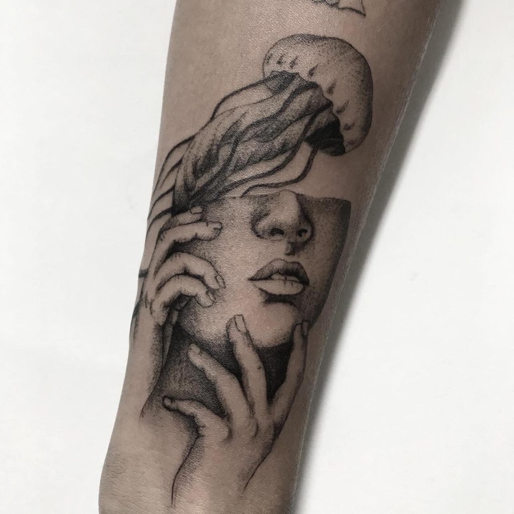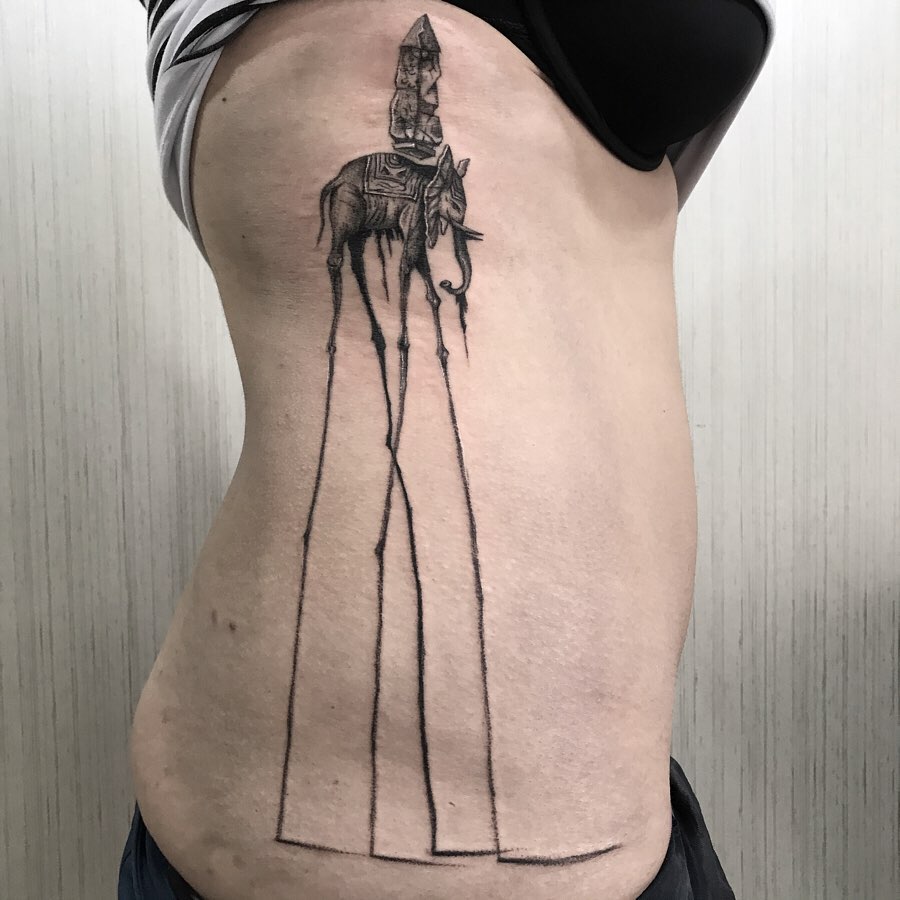 Tenho, também, uma grande paixão pelo movimento Impressionista, que é uma grande inspiração para mim. Gosto da ideia da construção de contraste em cada pincelada, trabalhando luz e sombra. Cada ponto tem sua importância no todo, e na tatuagem as formas se dão na soma dos pontos.”