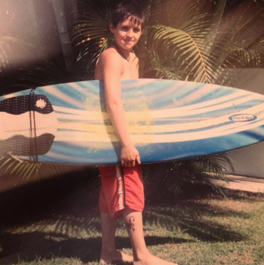 “Como estávamos na praia, a tatuagem da minha irmã saiu rápido como de se esperar. Já a minha estava PRETA, mesmo diariamente eu indo surfar. (ainda mais que eu tinha ganhado uma prancha nessa época).