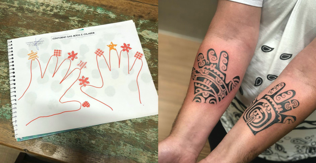 Nos desenhos para tatuar a mão direita eu foquei os significados para a passagem de vida dele, já na esquerda representei a união dos pais para superar tudo isso e principalmente entendimento sobre essa missão que eles foram incumbidos a passar.