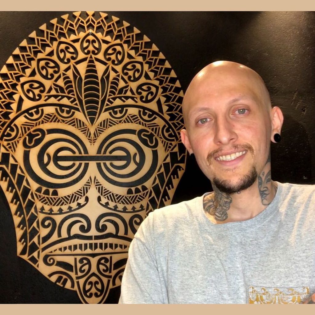 “Como eu sou especialista em tatuagem da cultura Polinésia, aquele famoso Maori, 97% das minhas tatuagens são voltadas para essa arte.