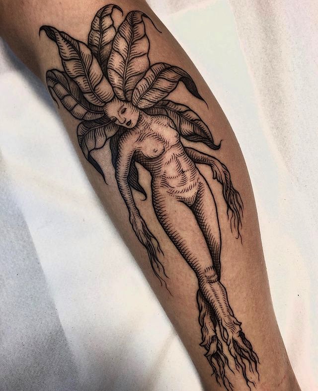 Vitória é uma tatuadora fantástica que faz tatuagens no estilo blackwork super definidas e com toques místicos.
