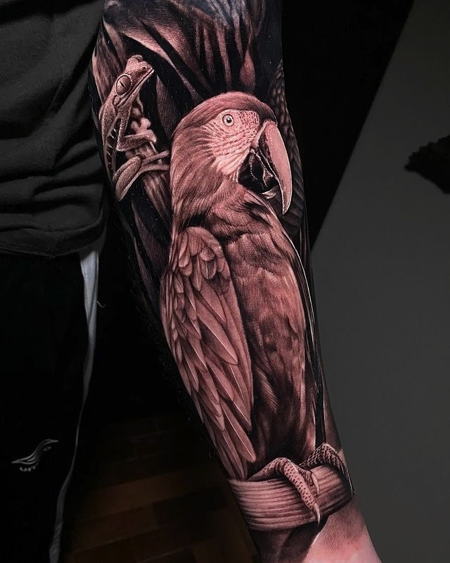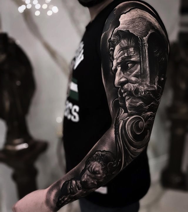 As tattoos grandes em Preto e Cinza também apareceram muito nesse ano. A cada ano que passa vemos mais fechamentos de braço, e desenhos cada vez mais detalhados e realistas.