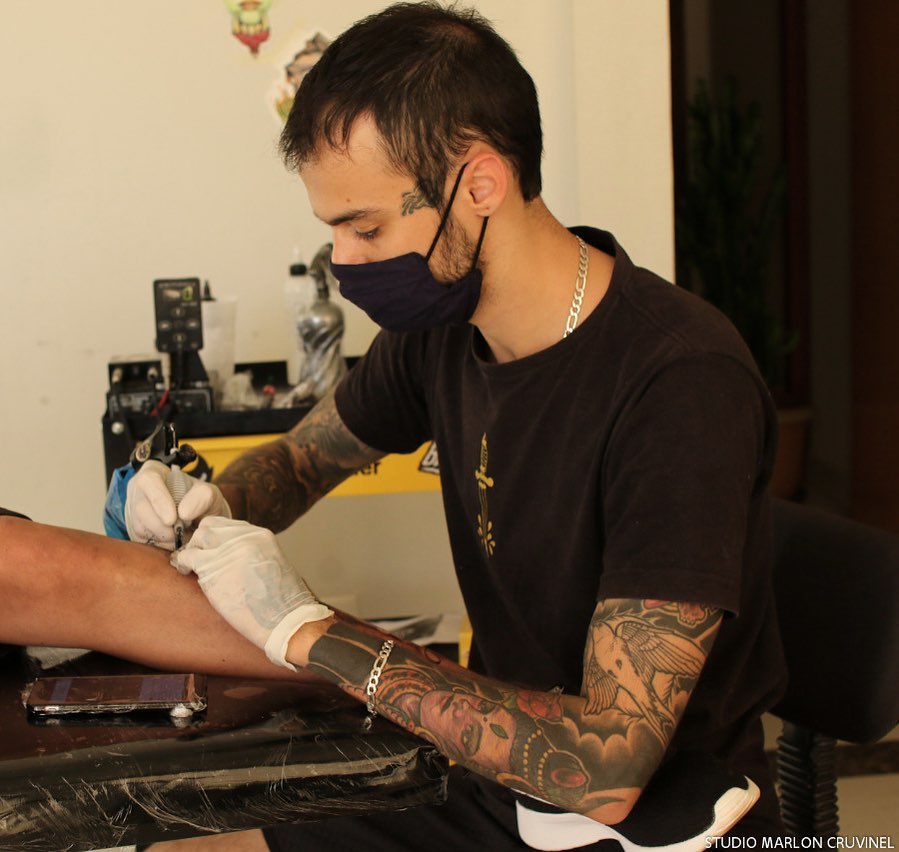 Logo em seguida, foi convidado por um amigo para trabalhar no estúdio de tattoo e com a cara e coragem, saiu da CLT e foi seguir seu sonho.