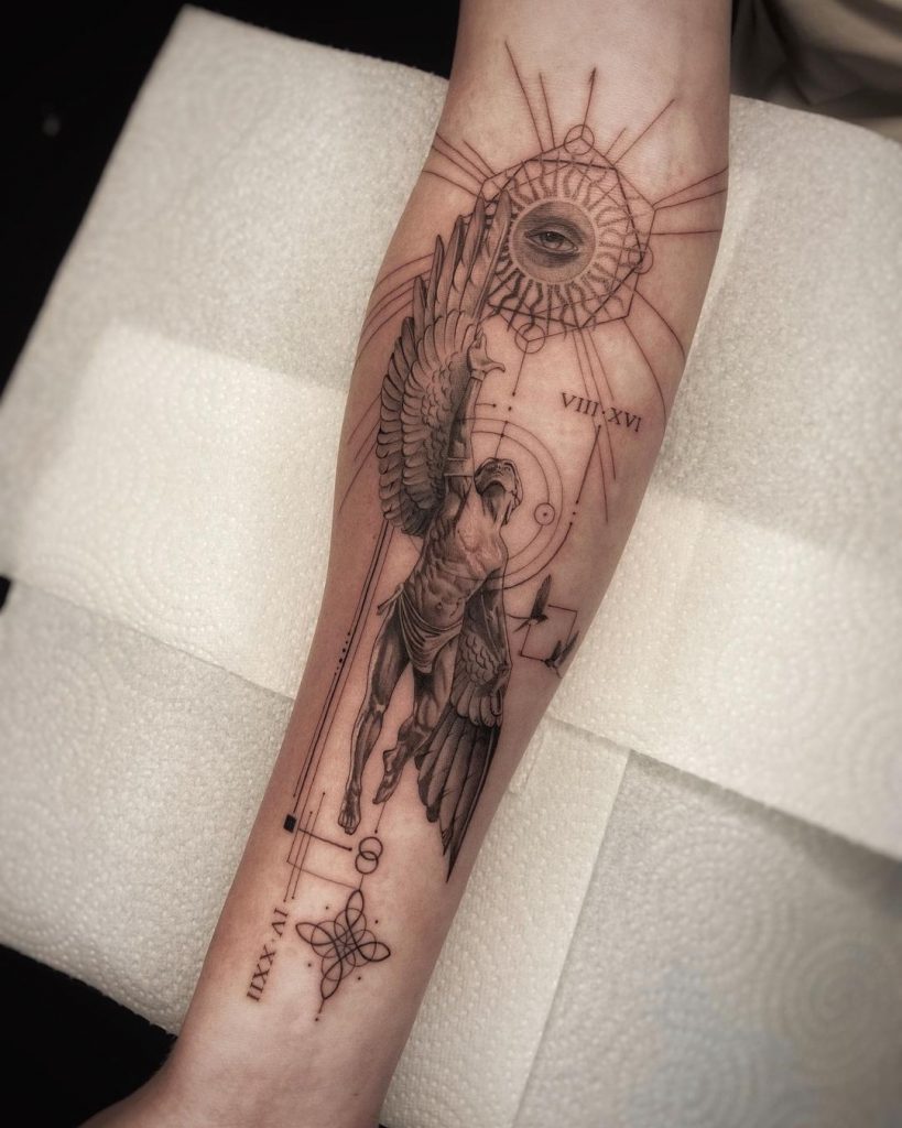 Esse enfoque em colaboração torna a troca durante as consultas cruciais. Cada detalhe e ideia partilhada serve de alicerce para o projeto. Com a base estabelecida, Eron mergulha profundamente no tema, analisando o espaço disponível na pele e como otimizar cada centímetro, garantindo assim que a tatuagem não apenas se encaixe perfeitamente, mas também conte uma história.