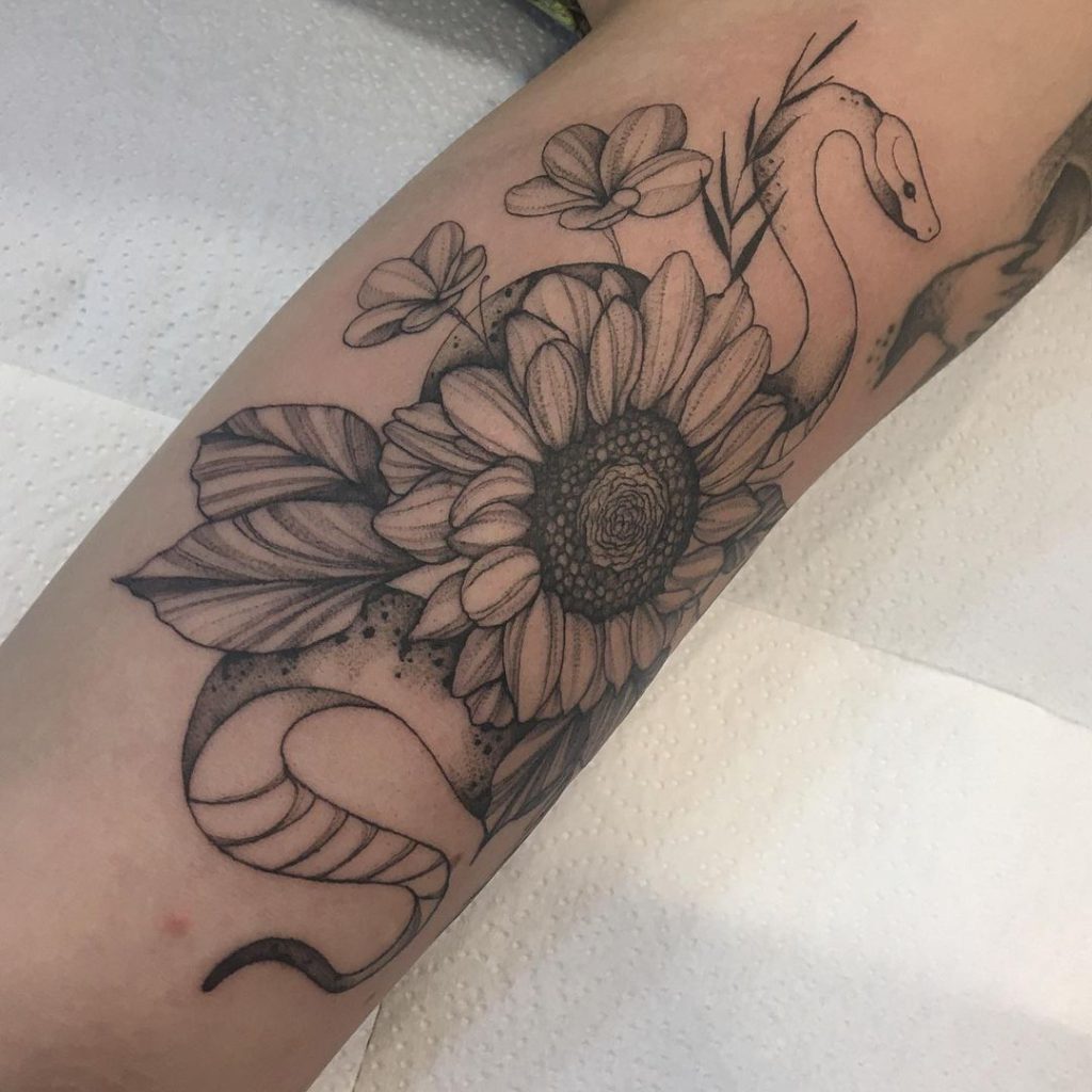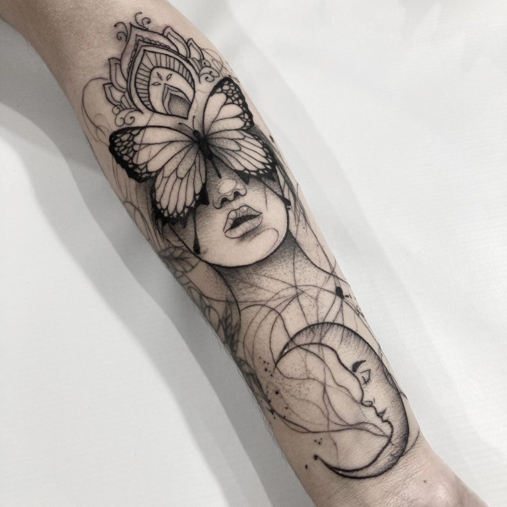 “Minha história com a arte começou na infância, nas minhas aulas eu me apaixonei pelo pontilhismo, demorei para seguir carreira, mas foi na tatuagem que me encontrei, ali comecei a criar a minha história de amor. Hoje fazem 7 anos de carreira com a tatuagem e a cada dia que passa eu corro para aprender mais, a crescer mais e amo muito mais. Meu amor é pelo blackwork e amo uma mistura de traços grossos, finos e rastelados.”