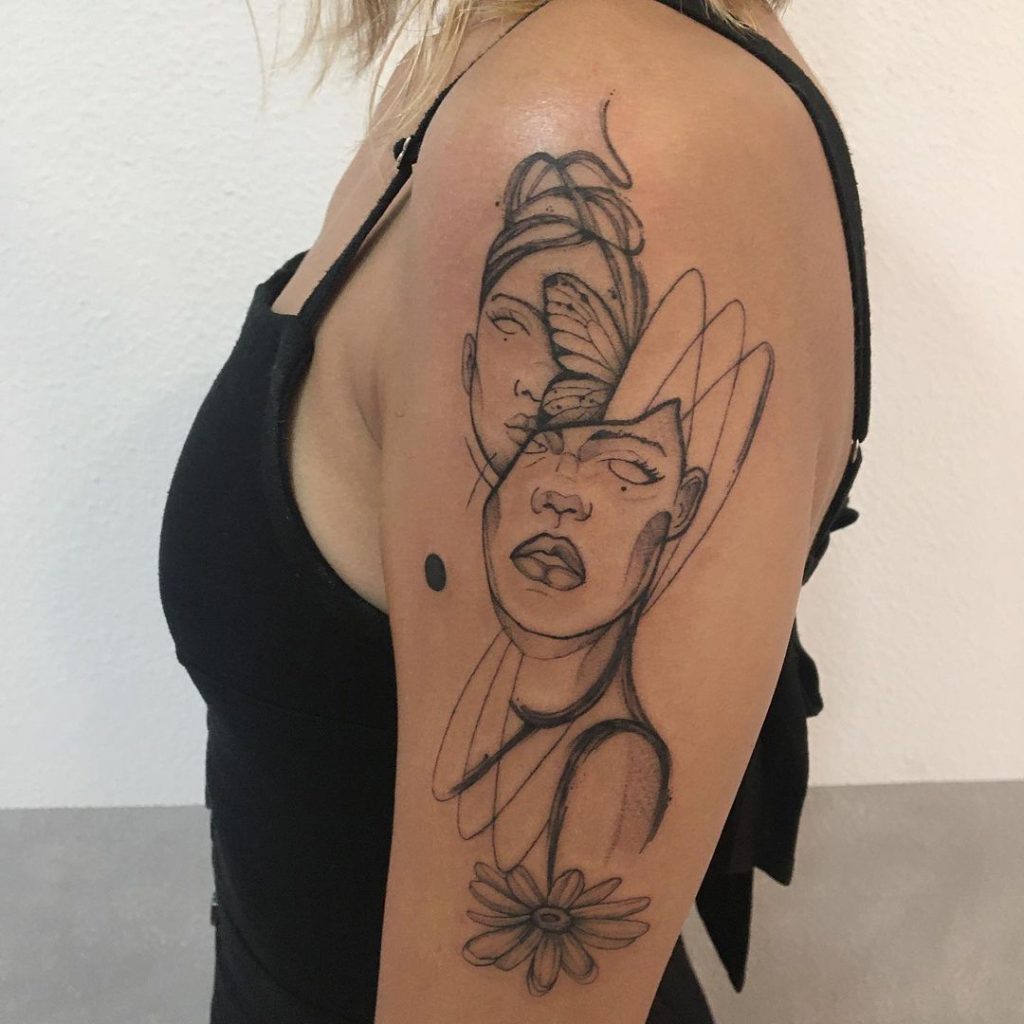 “Você já conheceu uma pessoa que cresceu desenhando e quando se deu conta ela estava trabalhando com algo relacionado a arte? Eu sou uma dessas pessoas.Por três anos estudei design gráfico e desenvolvimento de games em uma escola de computação gráfica (Saga). Hoje trabalho em um grande estúdio chamado “Hangar 82”, eles me receberam de portas abertas e encontrei uma família no mundo da tatuagem.”