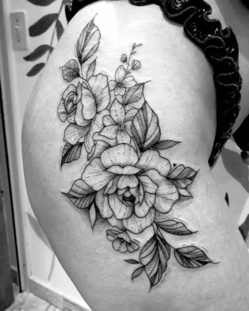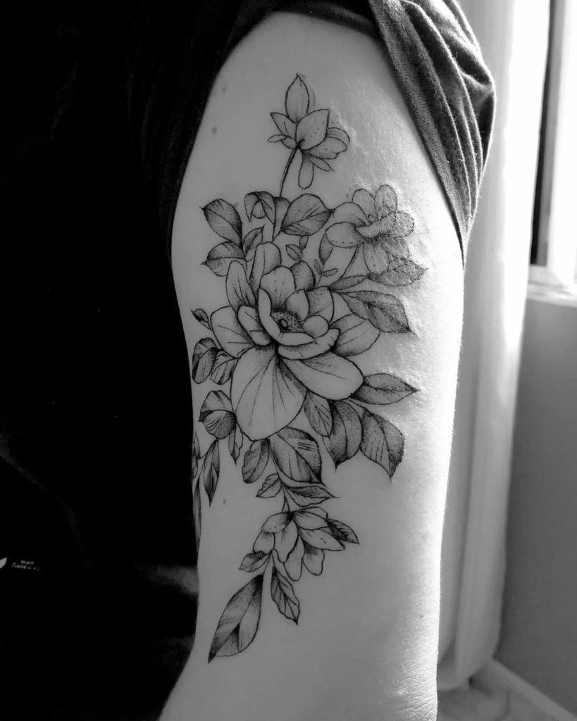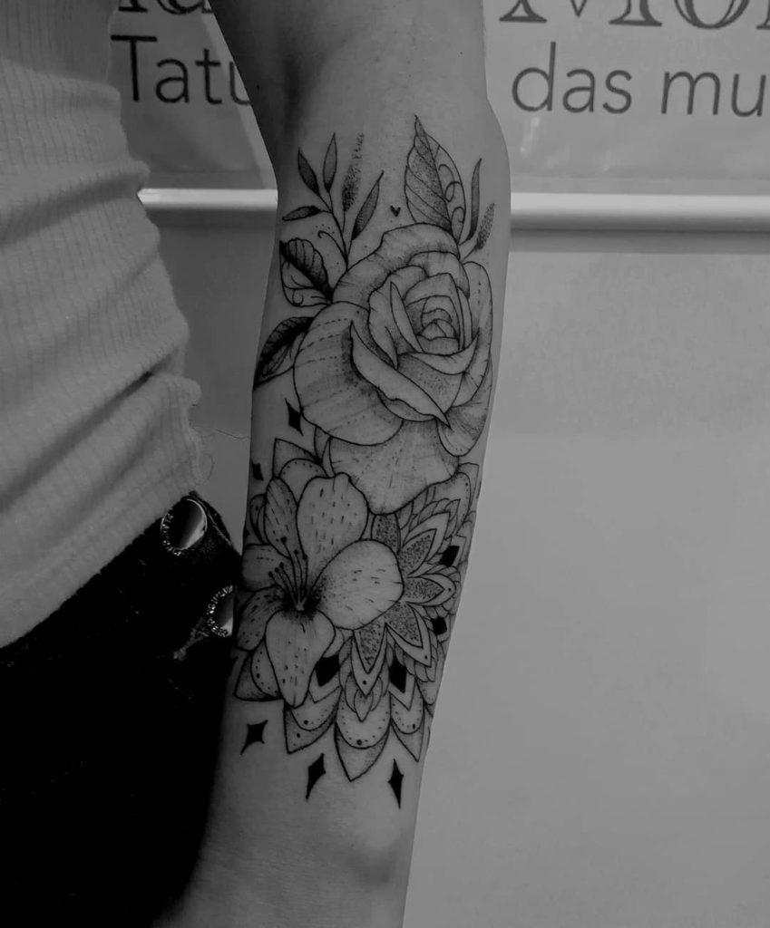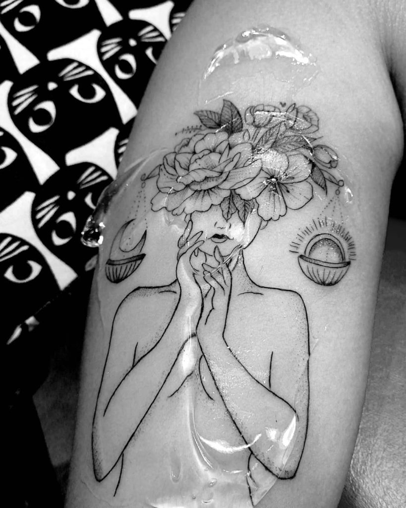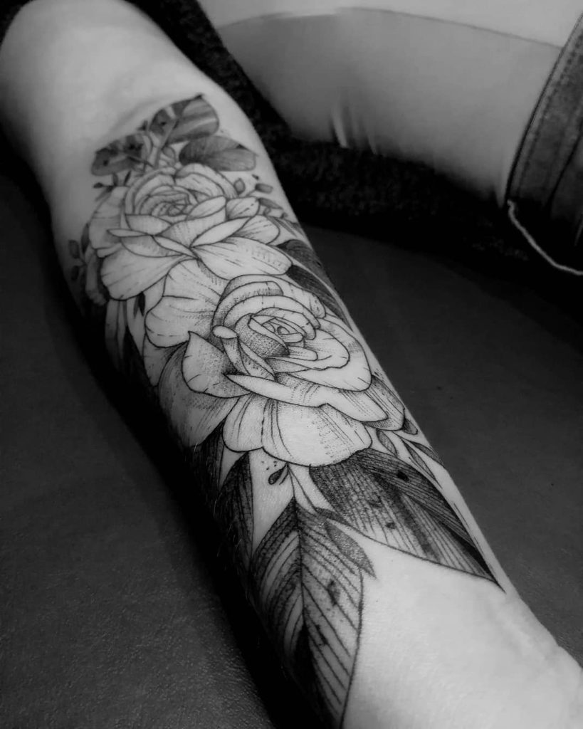 “Sobre o processo criativo, começo quase todos os meus dias cuidando das minhas plantinhas, observando que forma eu posso aplicar essas estruturas tão perfeitas e harmônicas no papel e posteriormente na pele, então vem algumas fotografias logo em seguida alguns esboços no papel, depois o aperfeiçoamento das linhas e finalmente o desenho vira uma linda tatuagem.