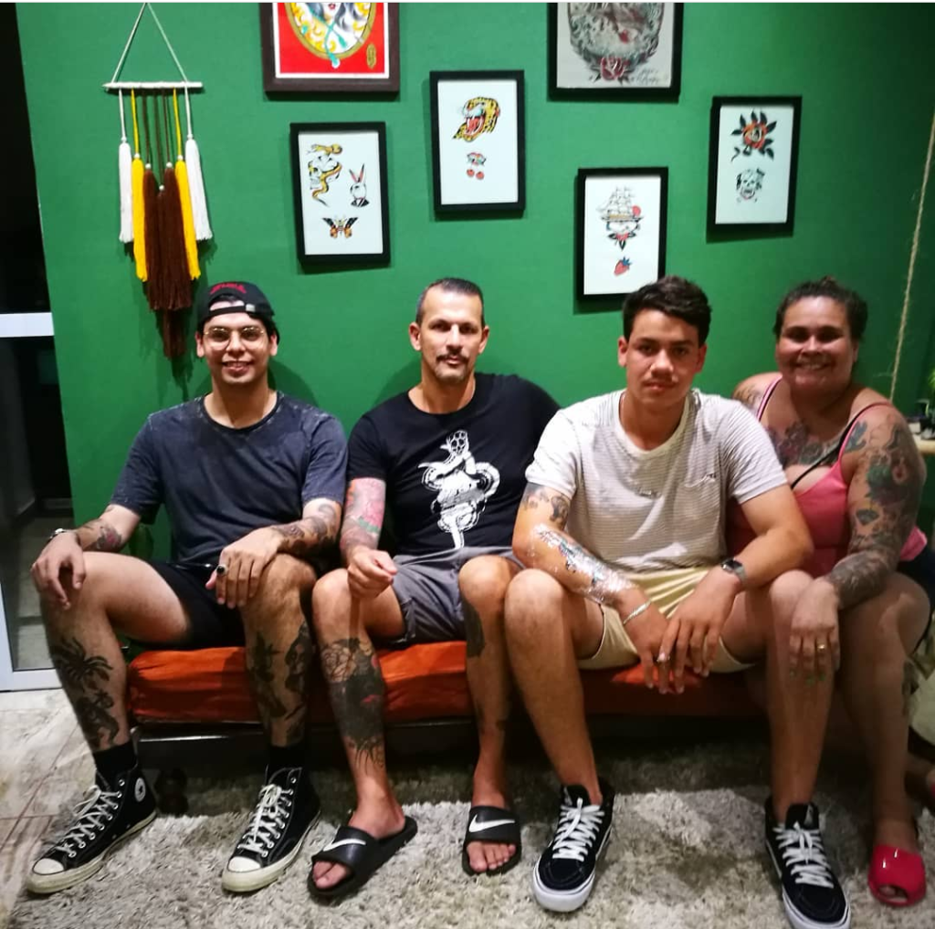 Um conselho talvez não conseguiria dar, mas posso dizer o que funciona com a gente, em casa tomamos café, almoçamos e jantamos tatuagem e todo tipo de arte, a constante prática, auto crítica e também aceitação de críticas construtivas sempre funcionaram no nosso caso.”