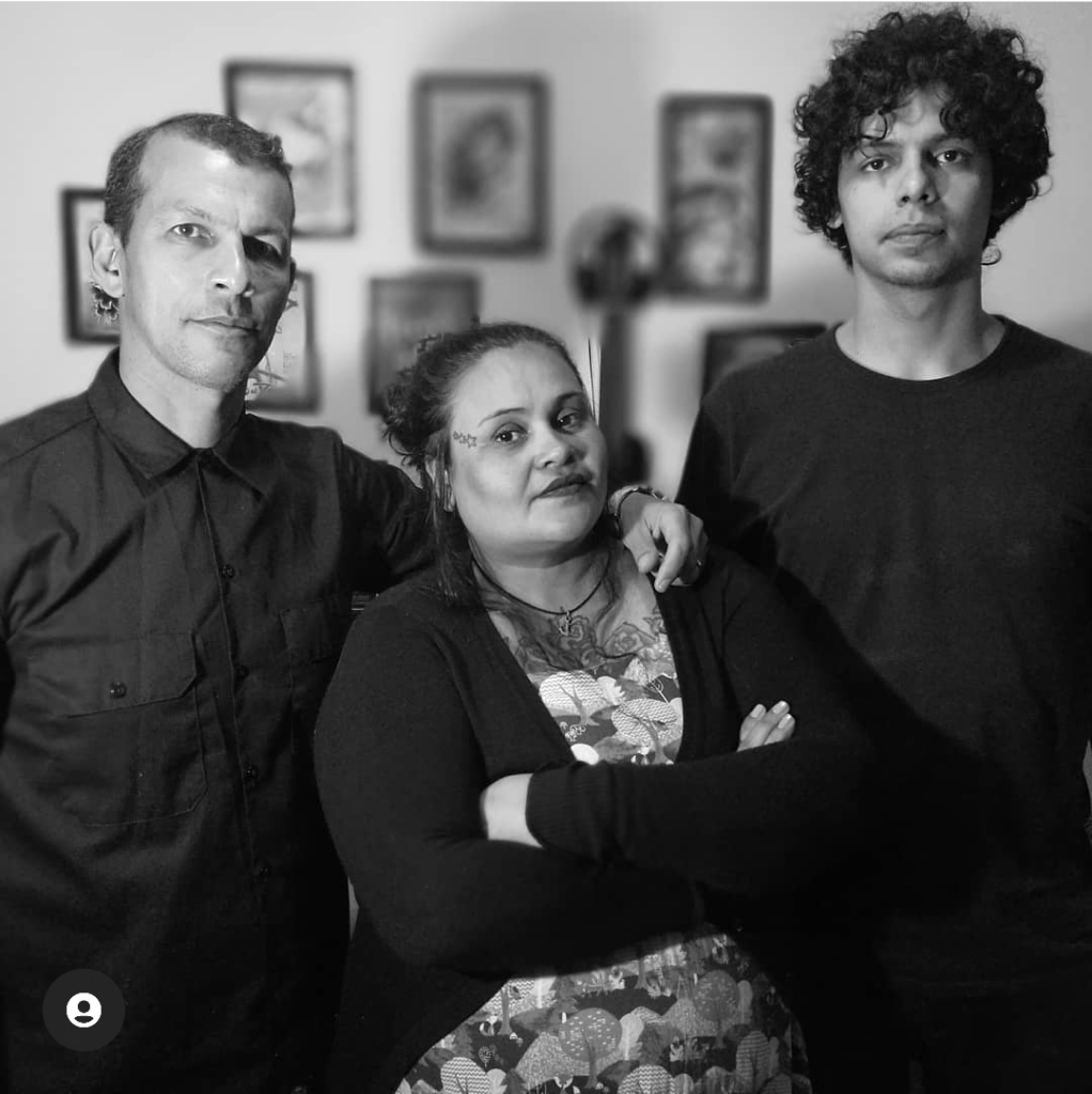 “Quanto à minha família, sou casada e tenho 3 filhos, transitamos por algumas vertentes artísticas, temos o nosso filho mais velho Vinnie Monteiro 24 anos, tatuador há 10 anos,também skatista,fotógrafo,modelo etc.